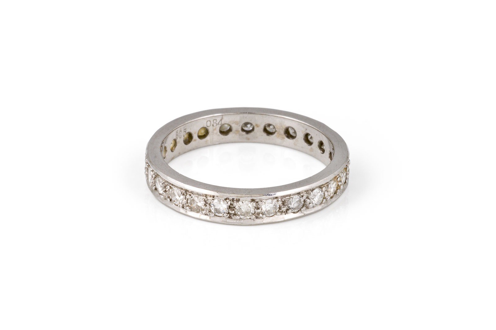 WG 585. Ringmaß: ca. 57. Ringbreite: ca. 3,7 mm. Ges.-Gew.: ca. 4,2 g. Ring, besetzt mit Brillanten zus. ca. 0.84 ct. H/VS-P.