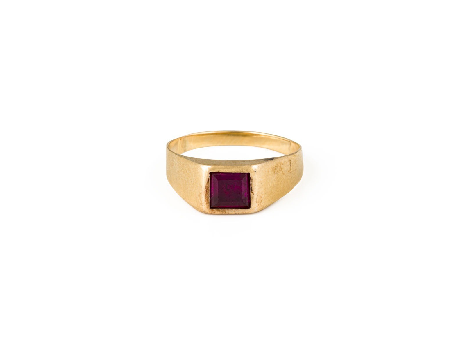 GG 585 (getestet). Ringmaß: ca. 54. Ringbreite: ca. 6,9 mm. Ges.-Gew.: ca. 2,1 g. Ring, besetzt mit einem zentralen Korund - wohl pinker Saphir von ca. 0.55 ct.