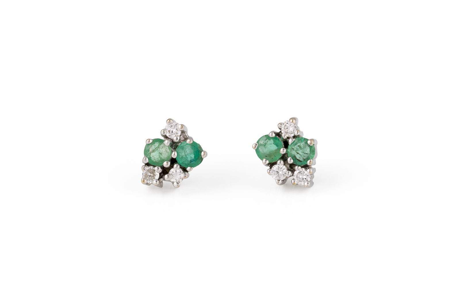 WG 585. Maße: ca. 7,4 x 9,0 mm. Ges.-Gew.: ca. 2,6 g. Ohrstecker, besetzt mit Smaragden zus. ca. 0.40 ct. und Brillanten zus. ca. 0.25 ct.