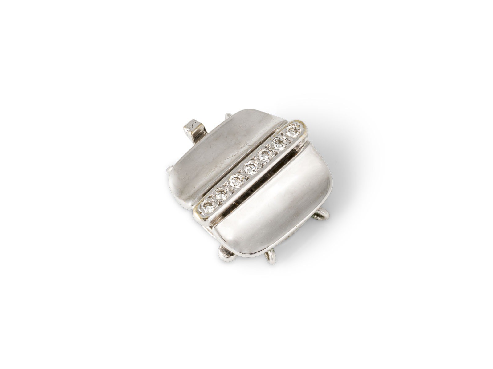 WG 750. Maße: L.: ca. 15,8 mm, B.: ca. 17,5 mm. Ges.-Gew.: ca. 4,6 g. Verschluss für eine zweireihige Kette, oder ein zweireihiges Armband. Besetzt mit einem