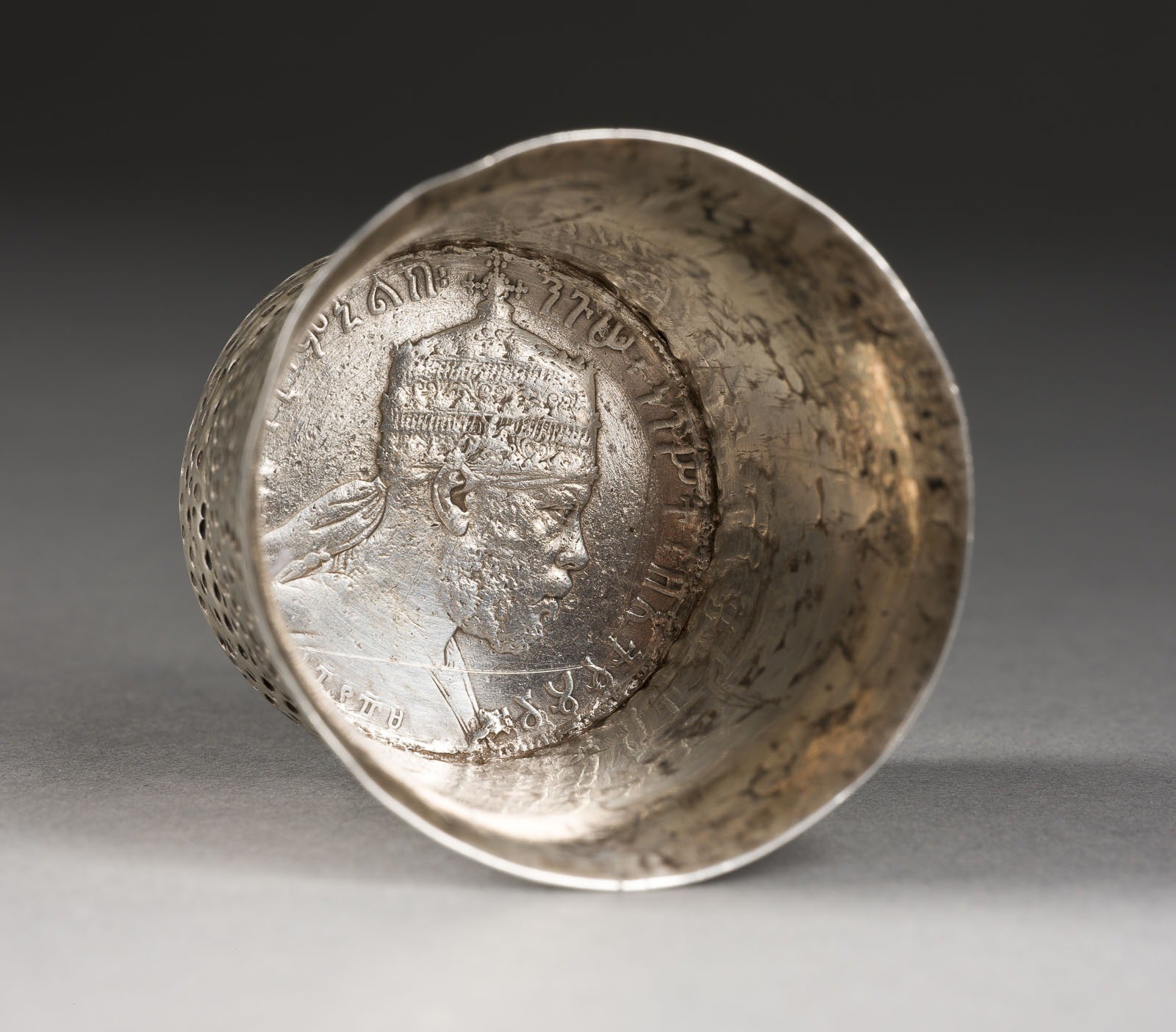 HUMPEN/POKAL MIT SIEGEL KAISER HAILE SELASSIE I UND KLEINER BECHER MIT TALERI KAISER MENELIK II