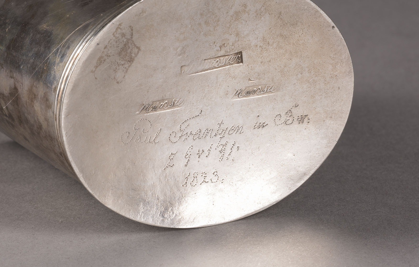 Silber. Gew. 128 g, H. 12 cm. Im Boden Punktgravur 'Paul Frantzen in Bw./1823', dreimal 'Munster'.