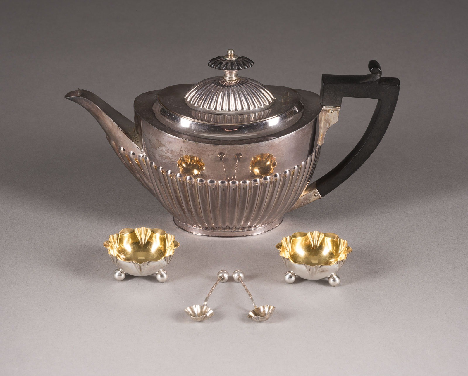 Silber, teilw. innen vergoldet, ebonisiertes Holz. Ges. Gew. 312 g. Punziert mit Garantie- und Herstellermarken sowie mit Jahresbuchstaben 'c' und 's'. Im originalen Etui.