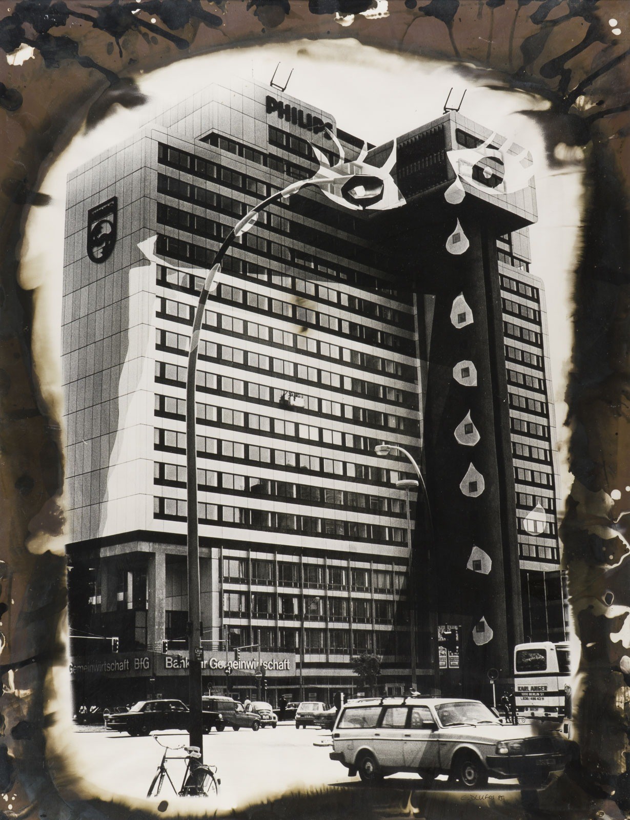 Mit fototechnischen Mitteln überarbeitete S/W-Fotografie auf Fotopapier. R 65,5 x 50,5 cm. SM 64 x 49 cm. Unten rechts sign. u. dat. 'C.DLUGOS (19)85'. Verso: Auf der Rahmenrückwand von fremder Hand bez. Papier wellig. Hinter Glas gerahmt (ungeöffnet).