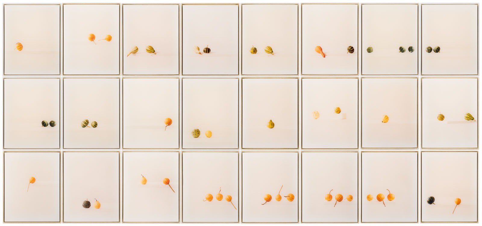 24 C-Prints auf Kunststoffplatte unter Acryl (DiaSec). R jew. 42 x 33,8 cm. 39,9 x 31,7 cm. Verso: jeweils mit Künstleretikett, darauf mit Faserstift sign. und mit gedruckten Werkangaben. Bestehend aus: Kürbis Nr. 3, 4, 5, 6, 7, 8, 8b, 9, 10, 11, 12, 13, 14, 15, 16, 17, 17b,