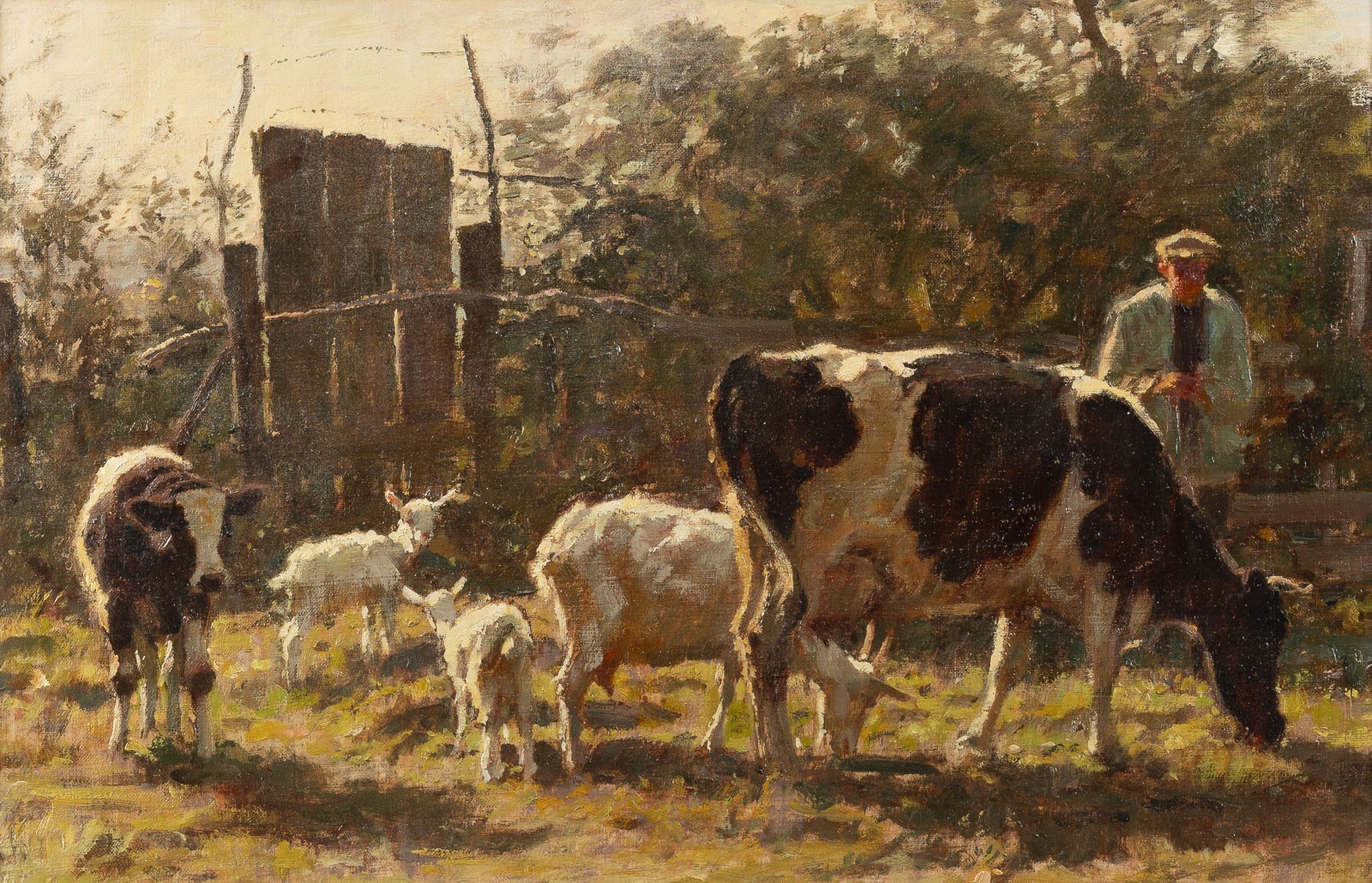 BAUER MIT KÜHEN UND ZIEGEN