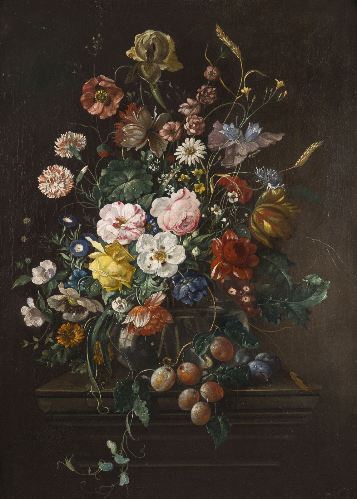BLUMENSTILLLEBEN MIT TULPEN, ROSEN, KORNBLUMEN, lILIEN, MARGERITEN UND VERGISSMEINNICHT