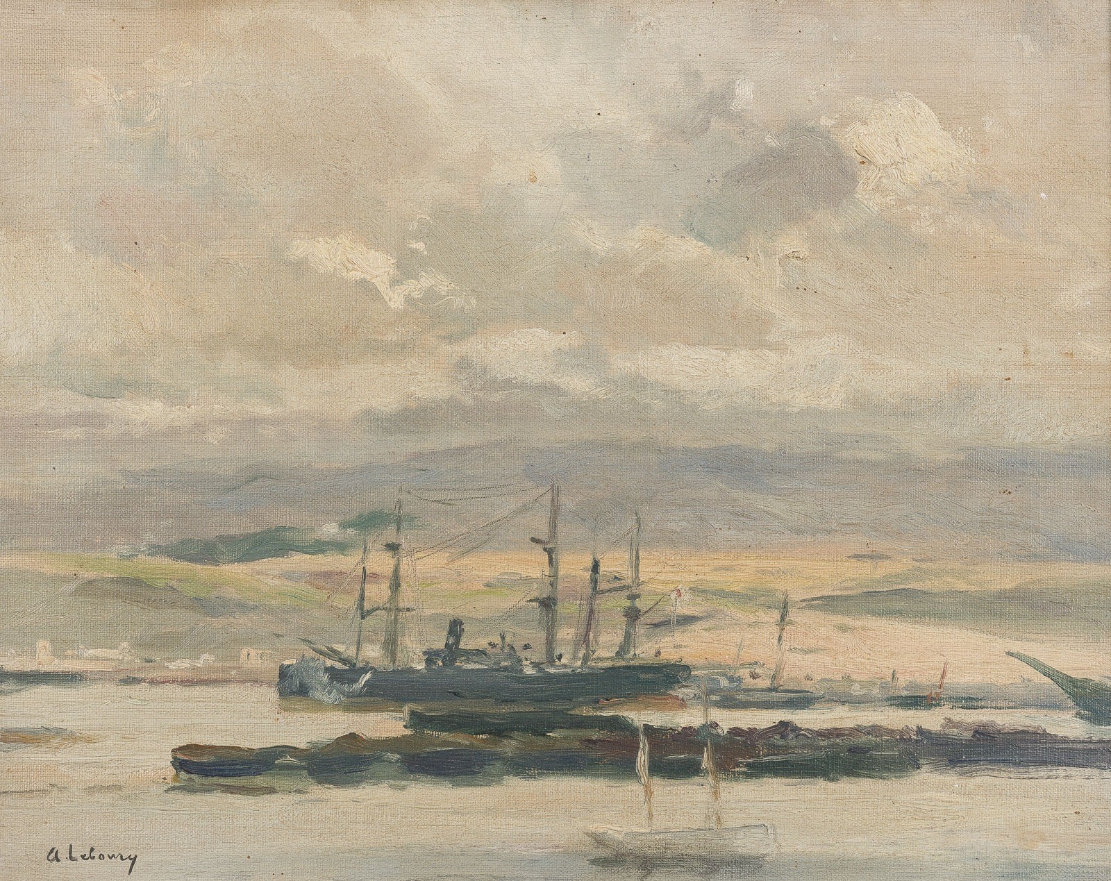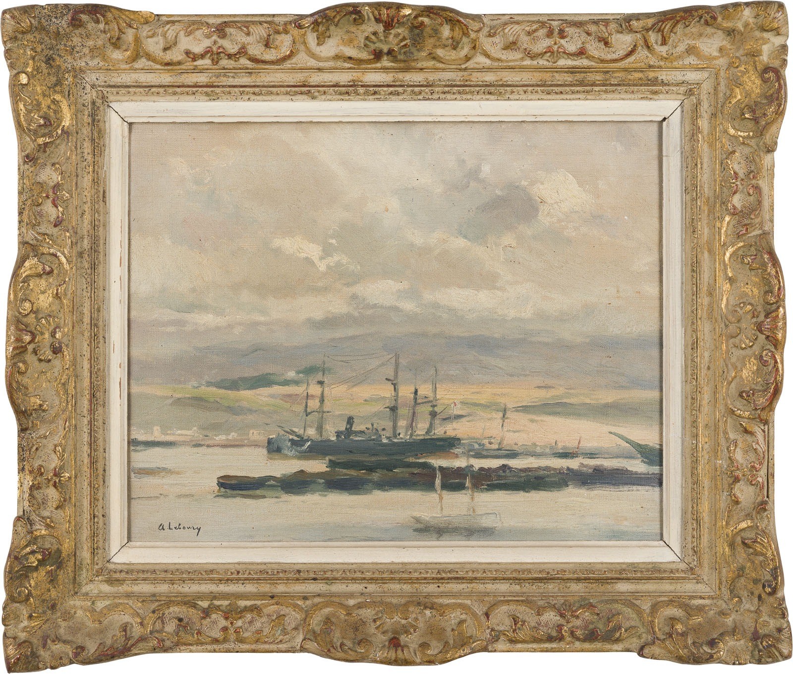 Öl auf Leinwand. 31 x 38 cm (R. 44 x 52 cm). Unten links signiert 'A. Lebourg'. Verso: Keilrahmen mit dem Stempel des Pariser Herstellers 'Revel et Coccoz, Boulevard de Clichy'. Rahmen.