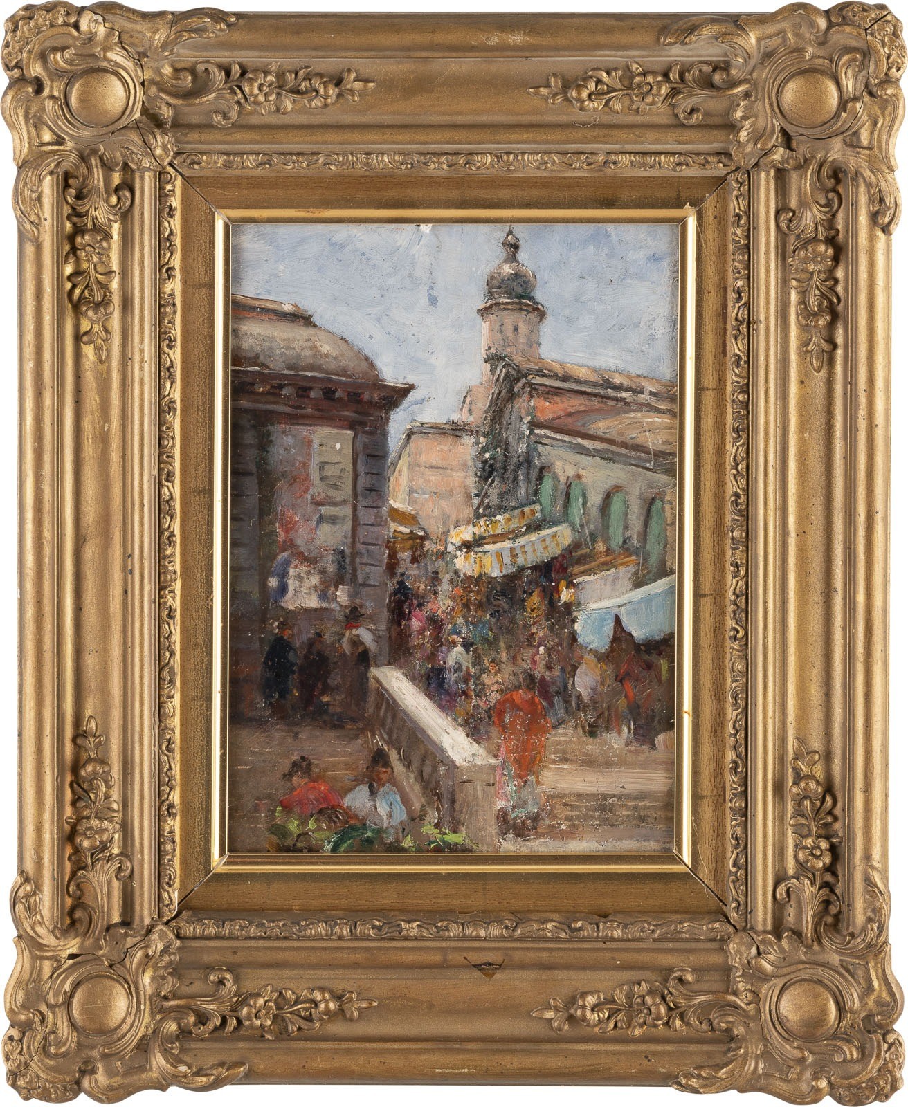 Öl auf Holz. 28 x 20 cm (R. 44 x 36 cm). Signiert unten links 'R. Lipps'. Rest., part. besch. Rahmen.