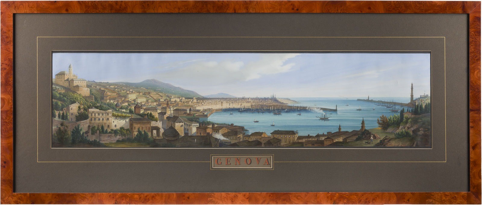 Lithografien, nachträglich um 1840 gouachiert. Jew. Sichtmaß 22 x 87 (R. 48,5 x 113 cm). Signiert 'Th. Girtin'. Jew. unter Glas und im Passepartout gerahmt.