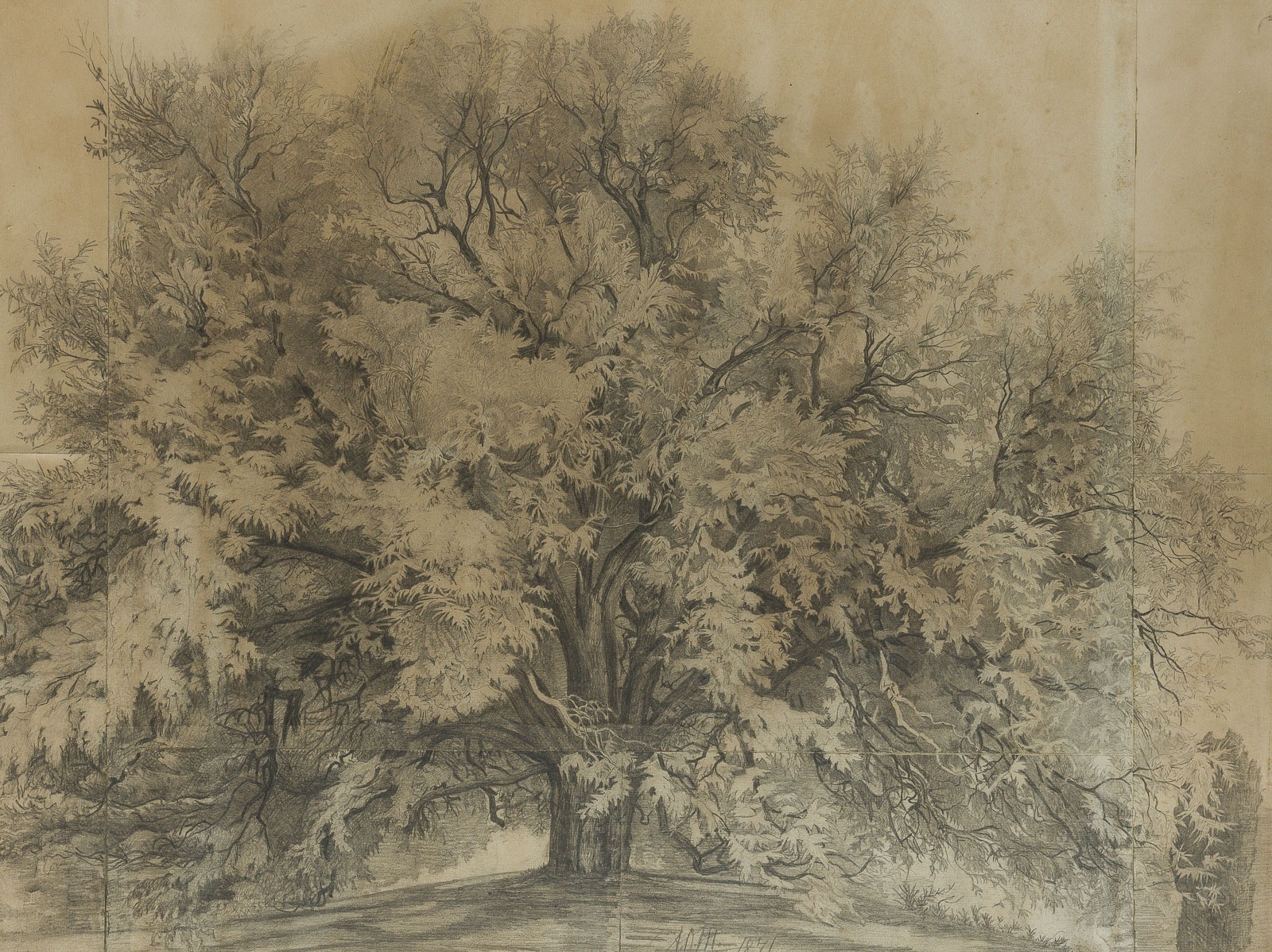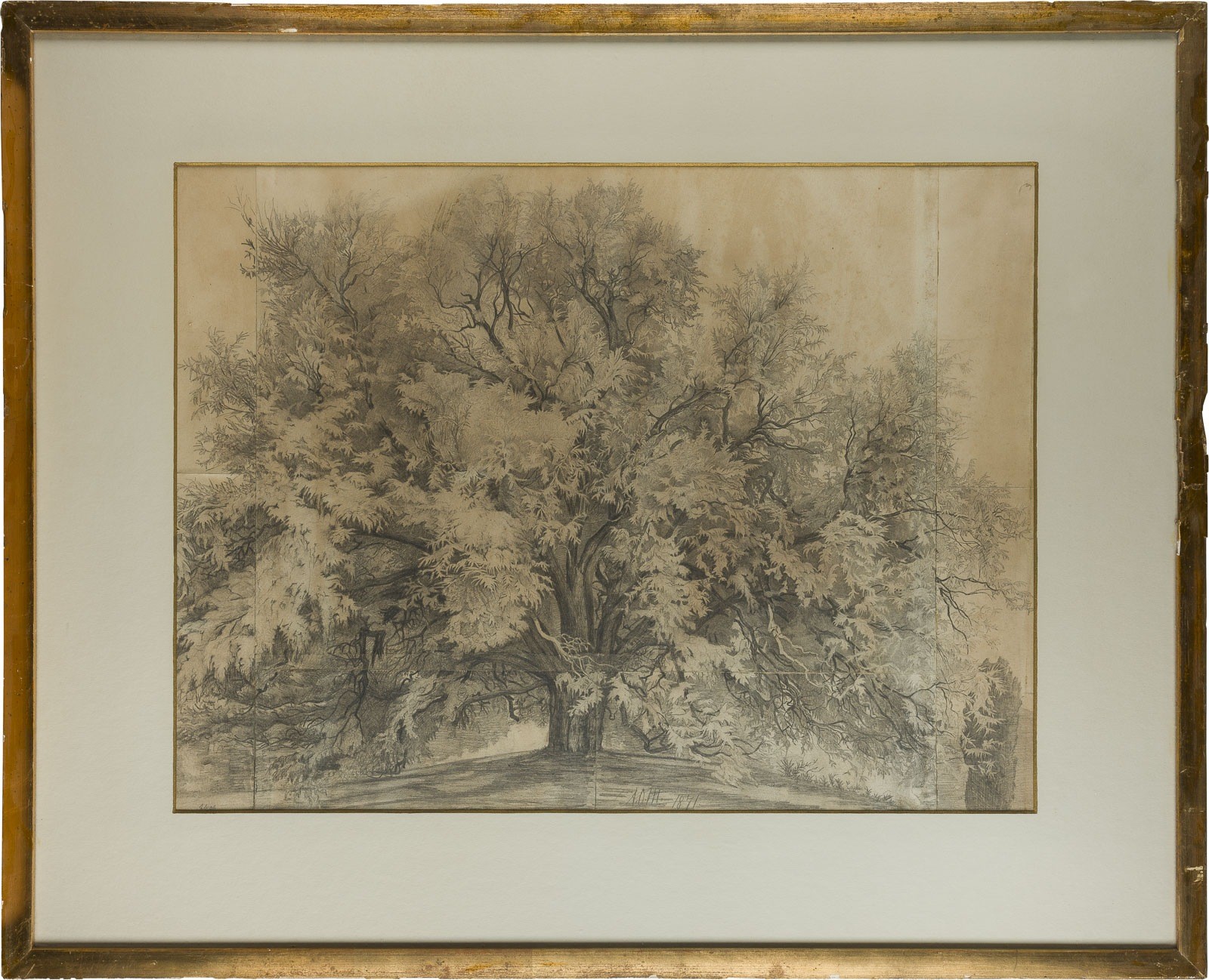 Zeichnung auf zusammengefügten und auf Karton aufgeklebten Papierblättern. 42 x 55 cm (R. 62.5 x 76.5 cm). Unten monogrammiert und datiert, schwerleserlich 'A.V.M. 1871', links unleserlich bezeichnet. Gebräunt. Hinter Glas und im Passepartout gerahmt.