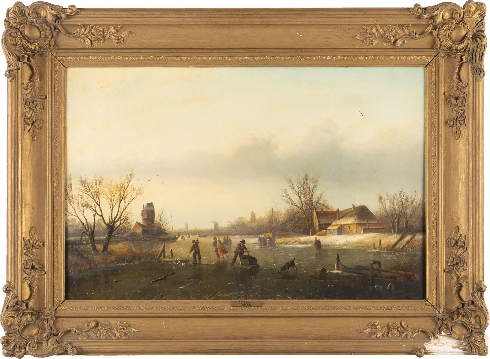 Öl auf Leinwand. 45 x 67 cm (R. 65 x 88 cm). Signiert unten rechts 'J.J.C. Spohler'. Part. Craquelé, Leinwand ist an einer Stelle besch. Rahmen (part. besch.).