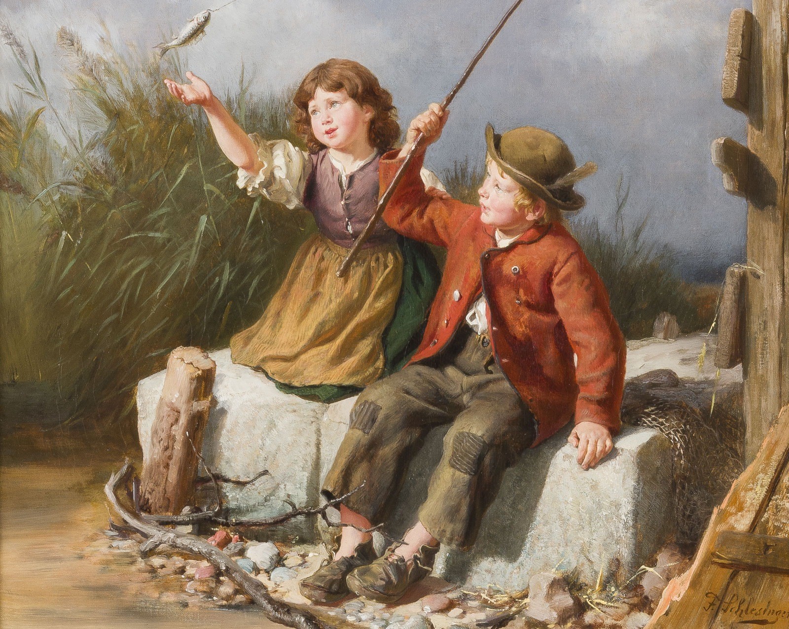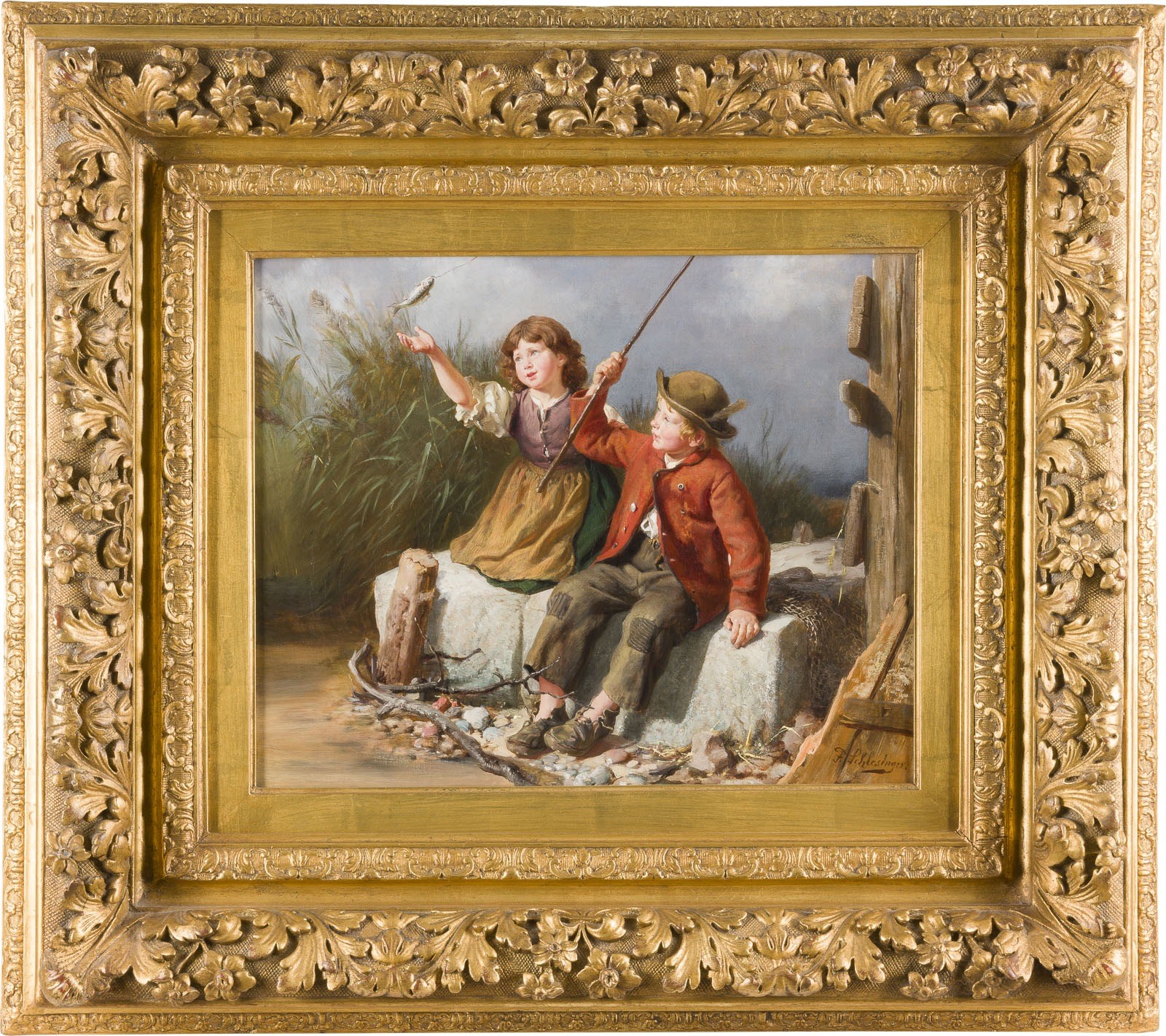 Öl auf Leinwand, doubliert. 34 x 41 cm (R. 63 x 70,5 cm). Unten rechts signiert 'F. Schlesinger'. Originalrahmen.