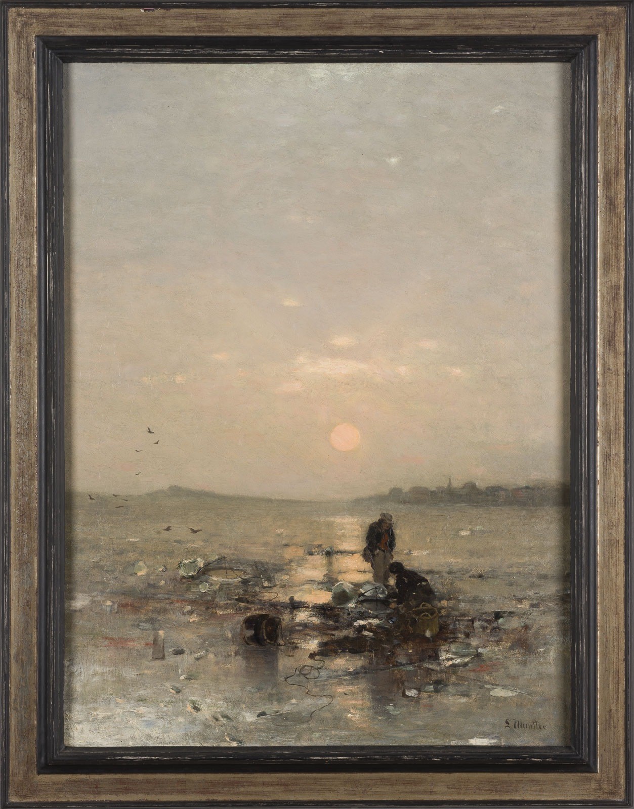 Öl auf Leinwand, auf Platte aufgezogen. 57,5 x 42,5 cm (R. 68 x 53,5 cm). Unten rechts signiert. Rahmen (verso verschlossen, ungeöffnet).