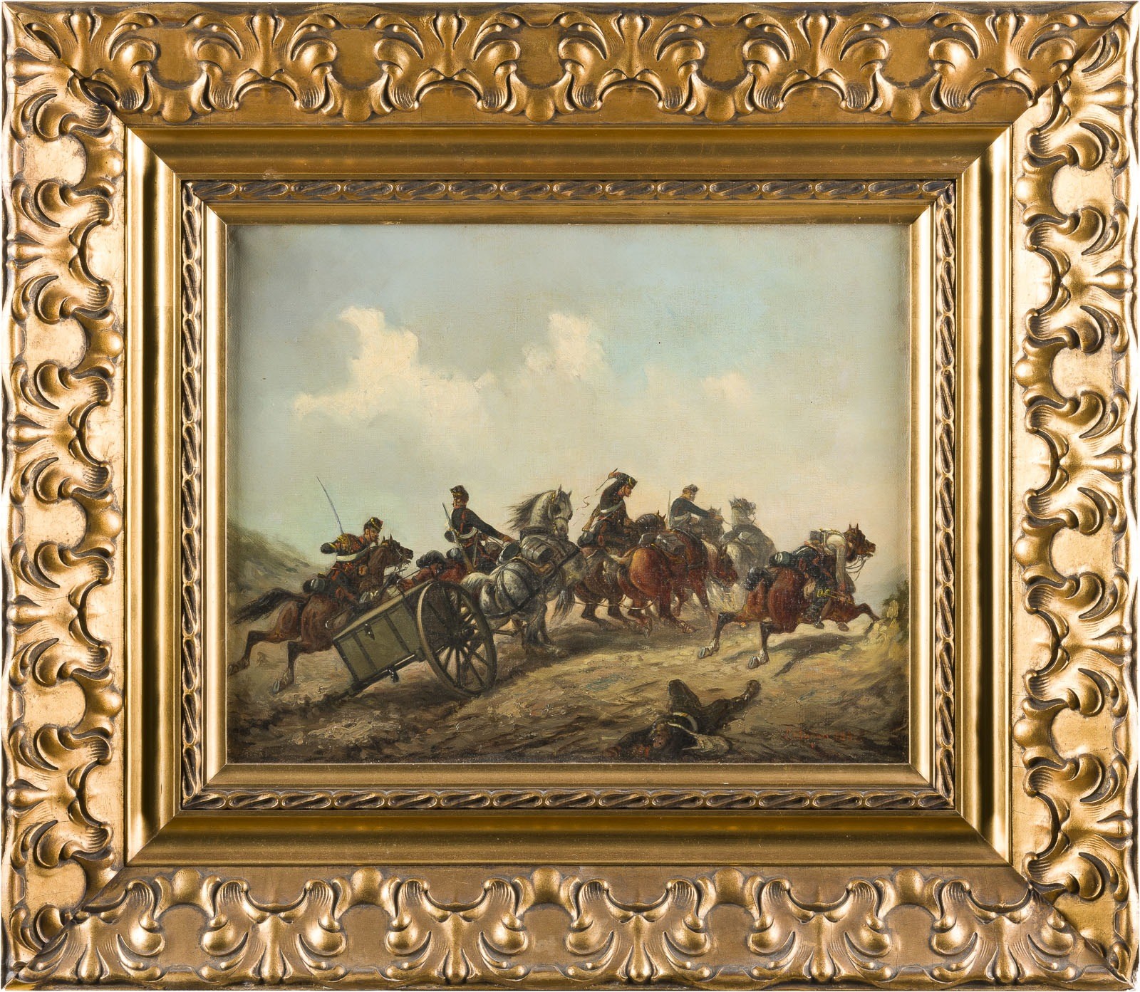 Öl auf Leinwand. 32 x 41 cm (R. 57 x 65 cm). Unten rechts signiert und datiert. Verso: Herstellerstempel auf der Leinwand. Rahmen.