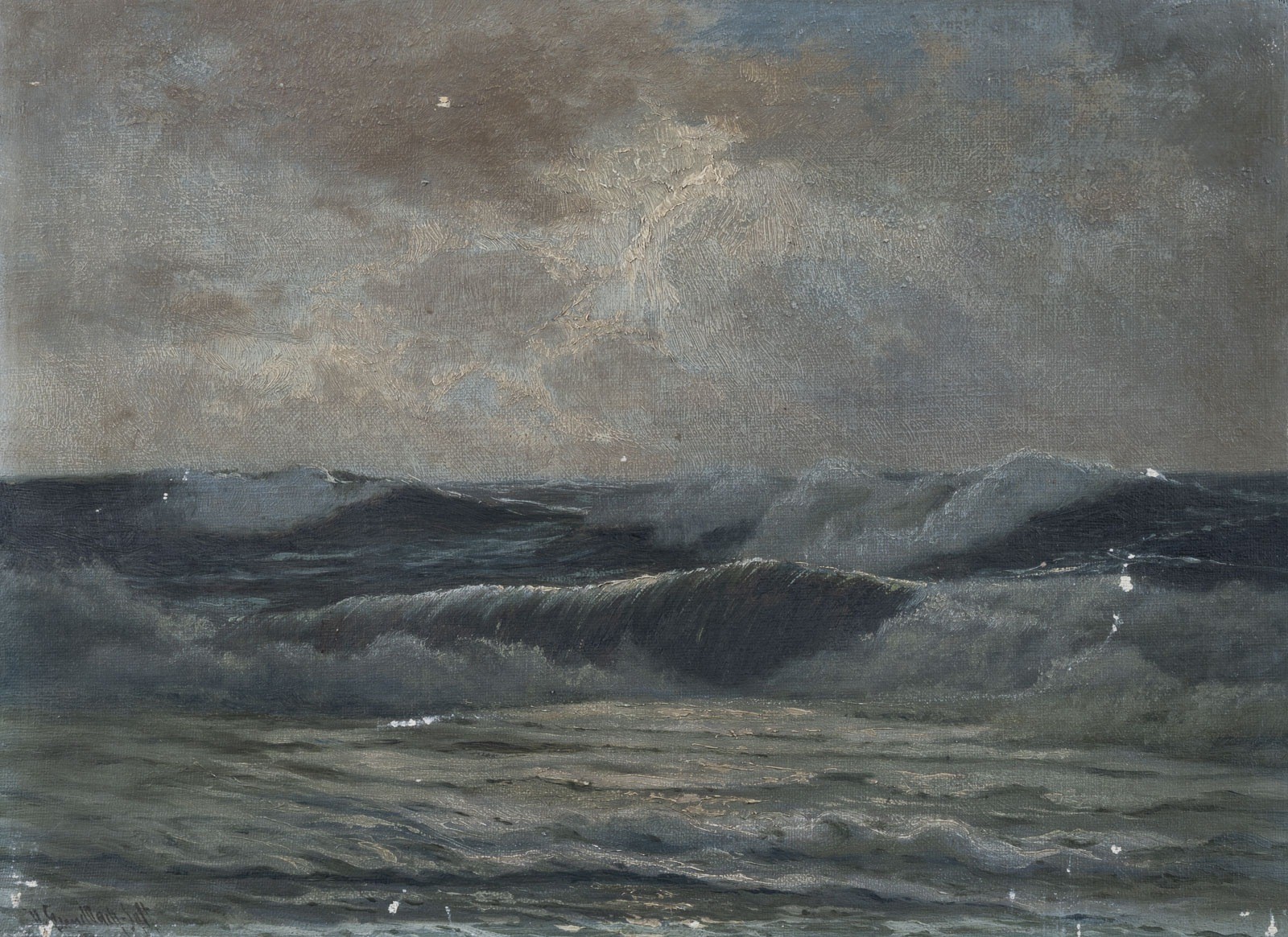 Öl auf Leinwand, auf Karton. 26 x 36,5 cm. Unten rechts signiert 'H Gundlach Sylt'. Verso: Künstleretikett mit Titel. Teilweise Farbabplatzungen, verschmutzt.