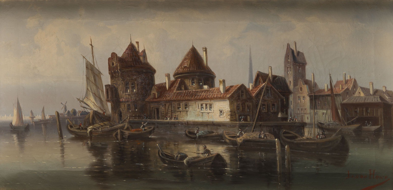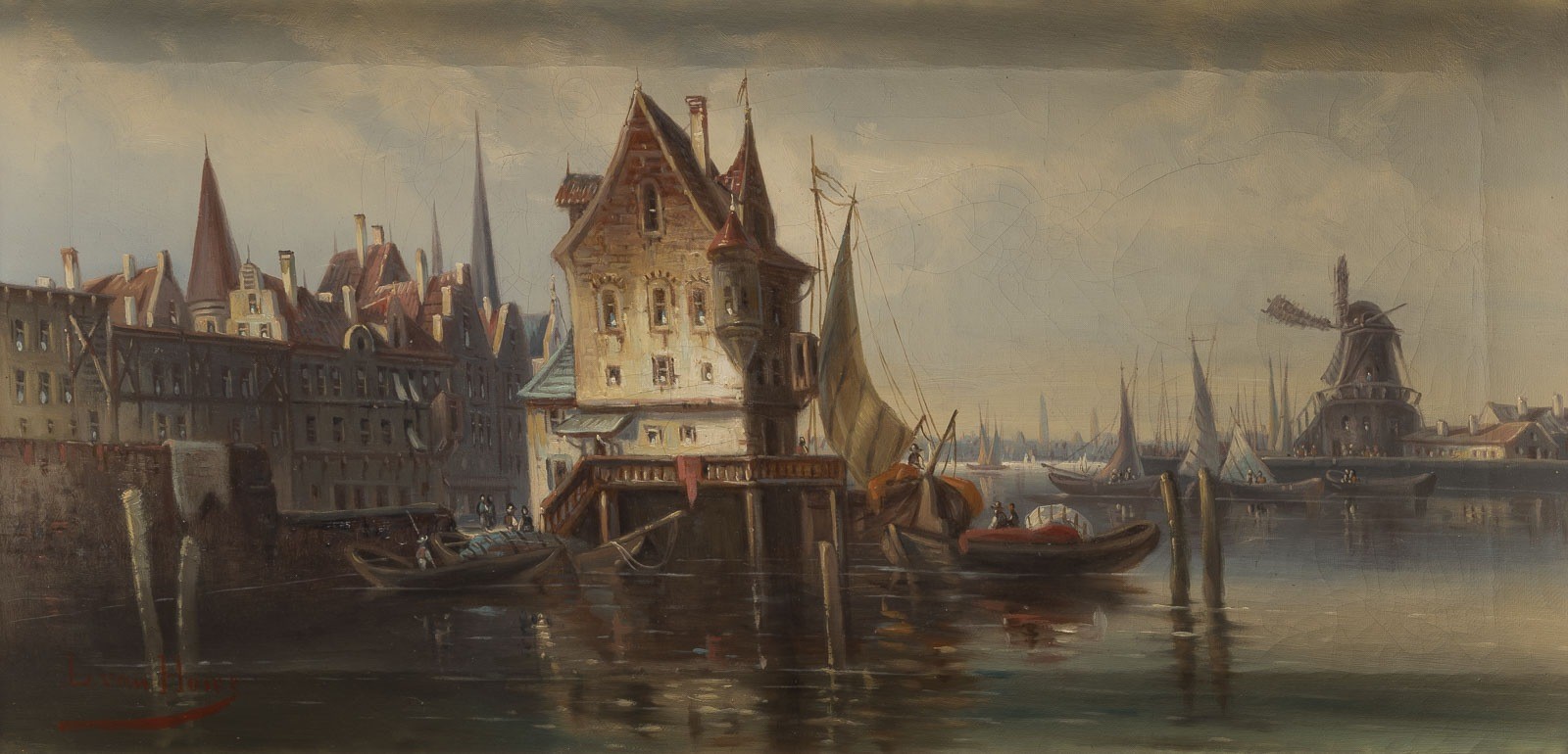 Jeweils Öl auf Leinwand. 26.5 x 53.5 (R. 48 x 74 cm). Jew. signiert mit Pseudonym 'L. van Hove'. Part. Krakelee. Jeweils gerahmt.