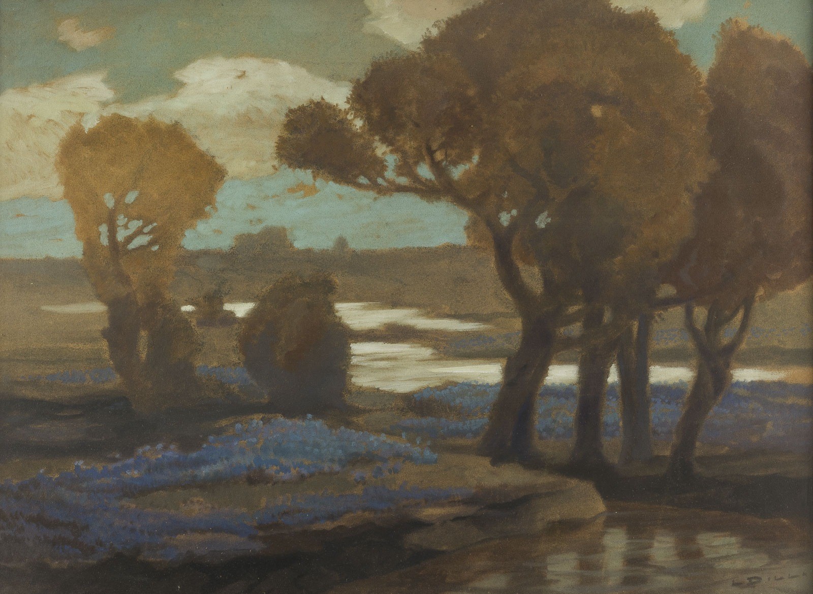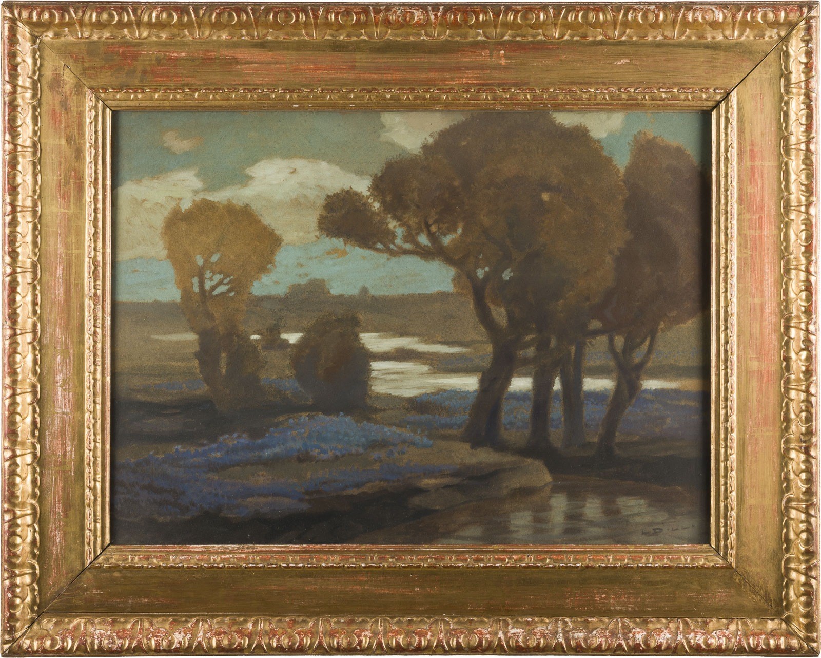Pastell auf Karton. 52 x 71 cm (R. 75 x 95 cm). Unten rechts signiert. Verso: handschriftliche Signatur in dunkle Tinte, alte Etiketten. Leincht gebräunt. Hinter Glas gerahmt.