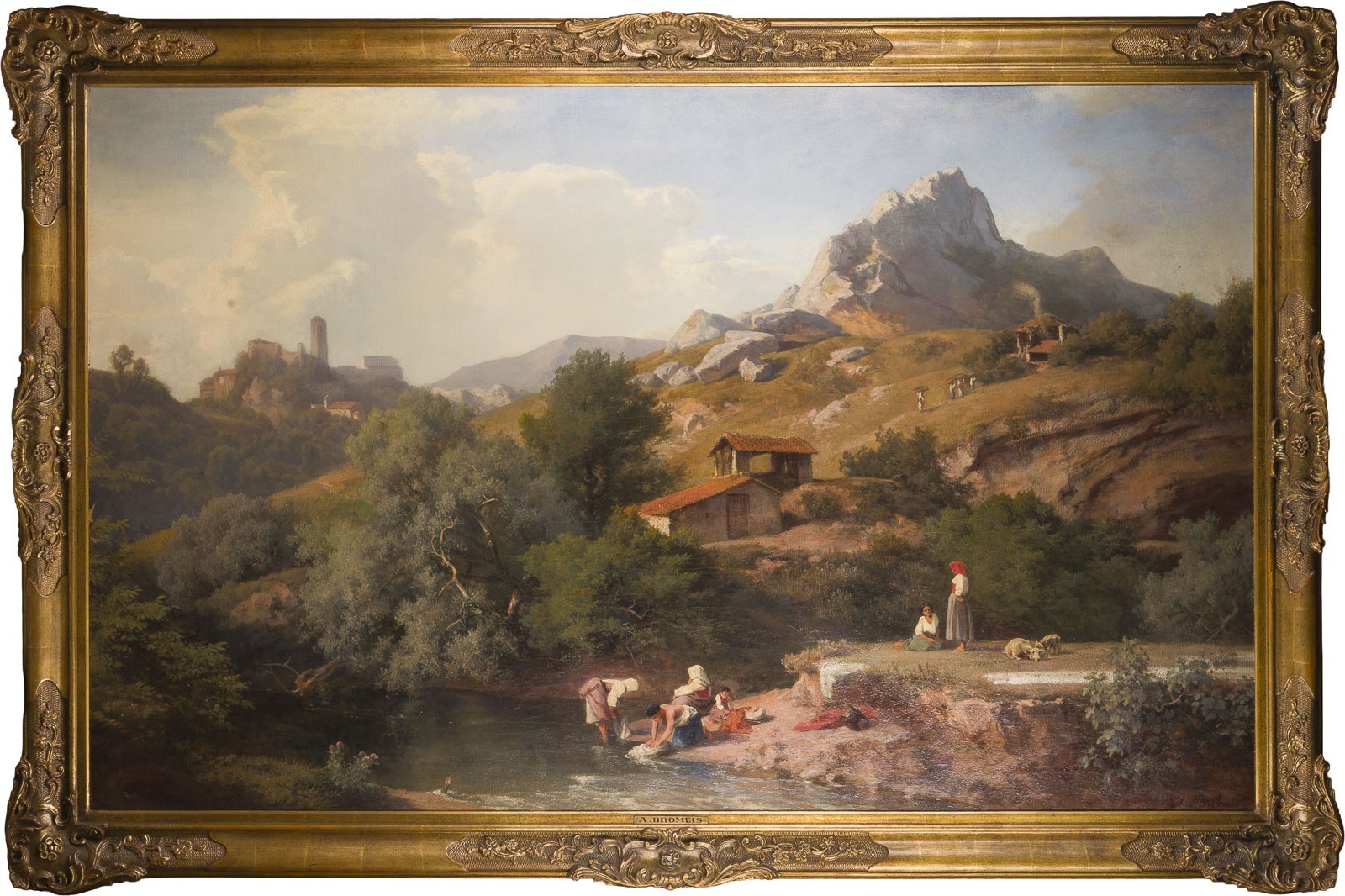 ITALIENISCHE LANDSCHAFT MIT WÄSCHERINNEN AM FLUSS