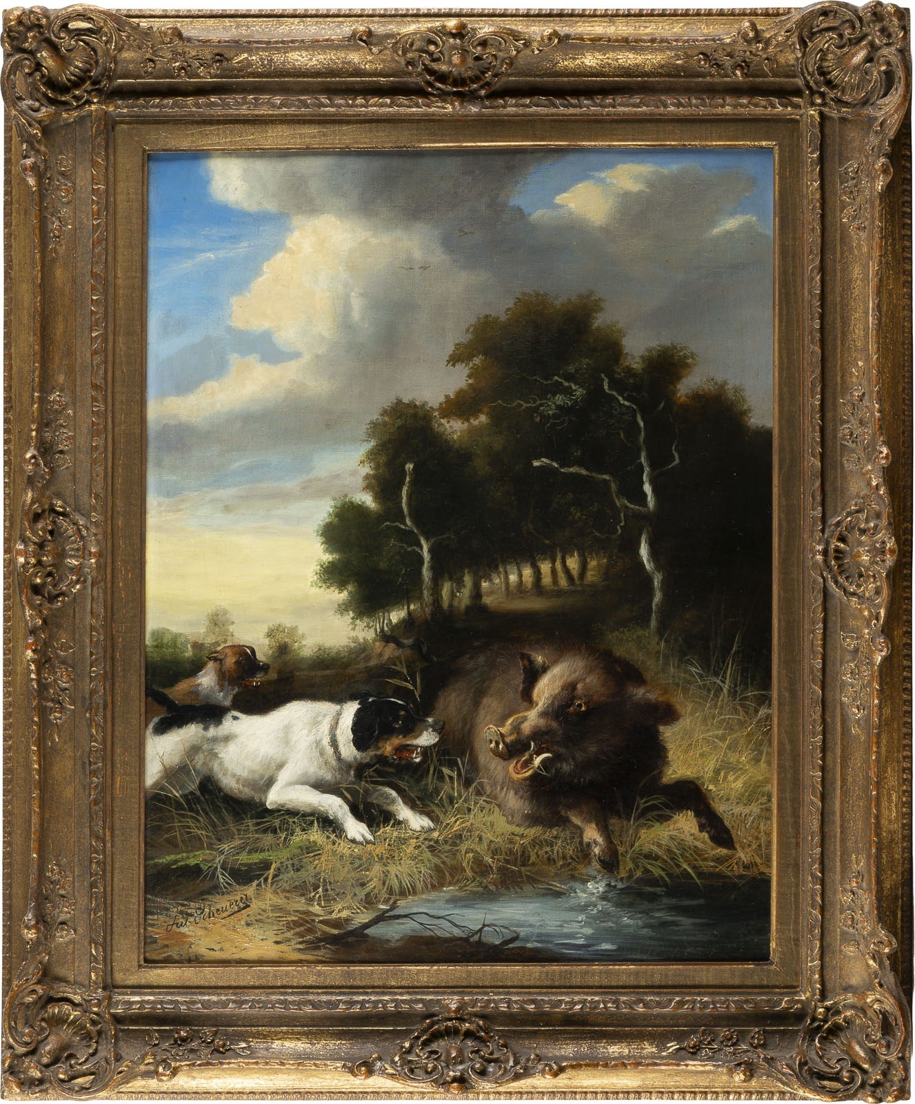 Öl auf Leinwand. 58 x 47 cm (R. 77 x 65 cm). Unten links signiert. Rest.