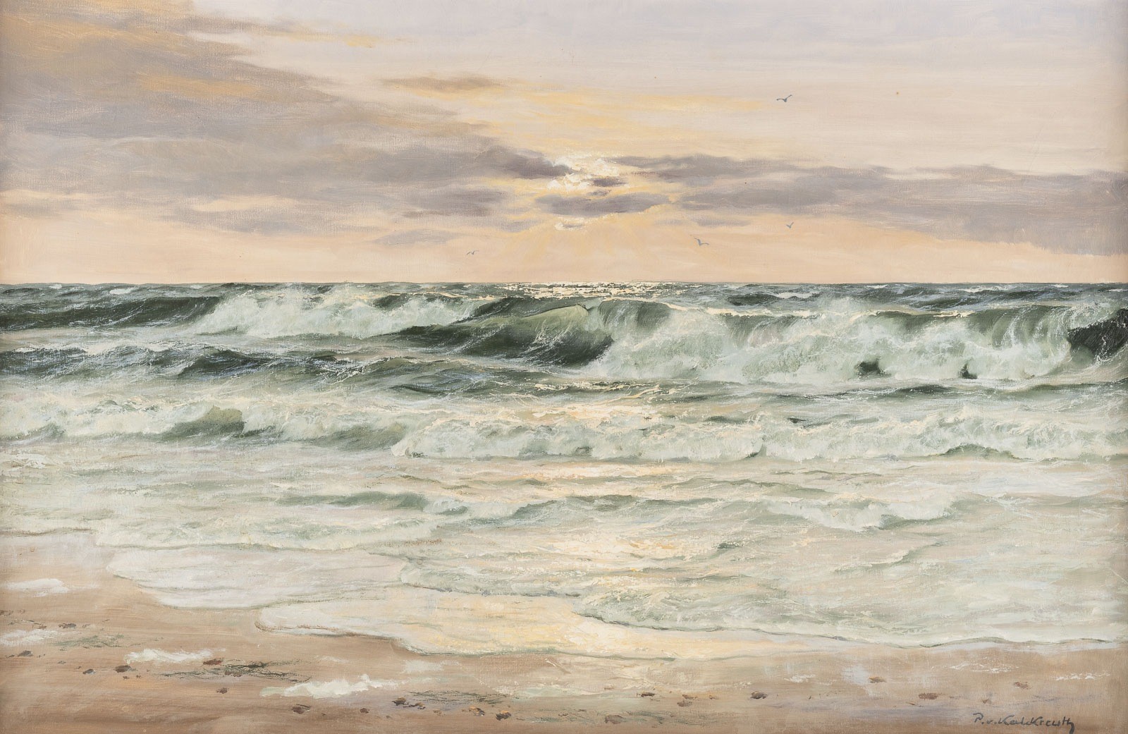 Öl auf Leinwand. 60 x 90 cm (R. 77 x 108 cm). Signiert unten rechts 'P. v. Kalckreuth'. Part. leicht verschm. Rahmen.