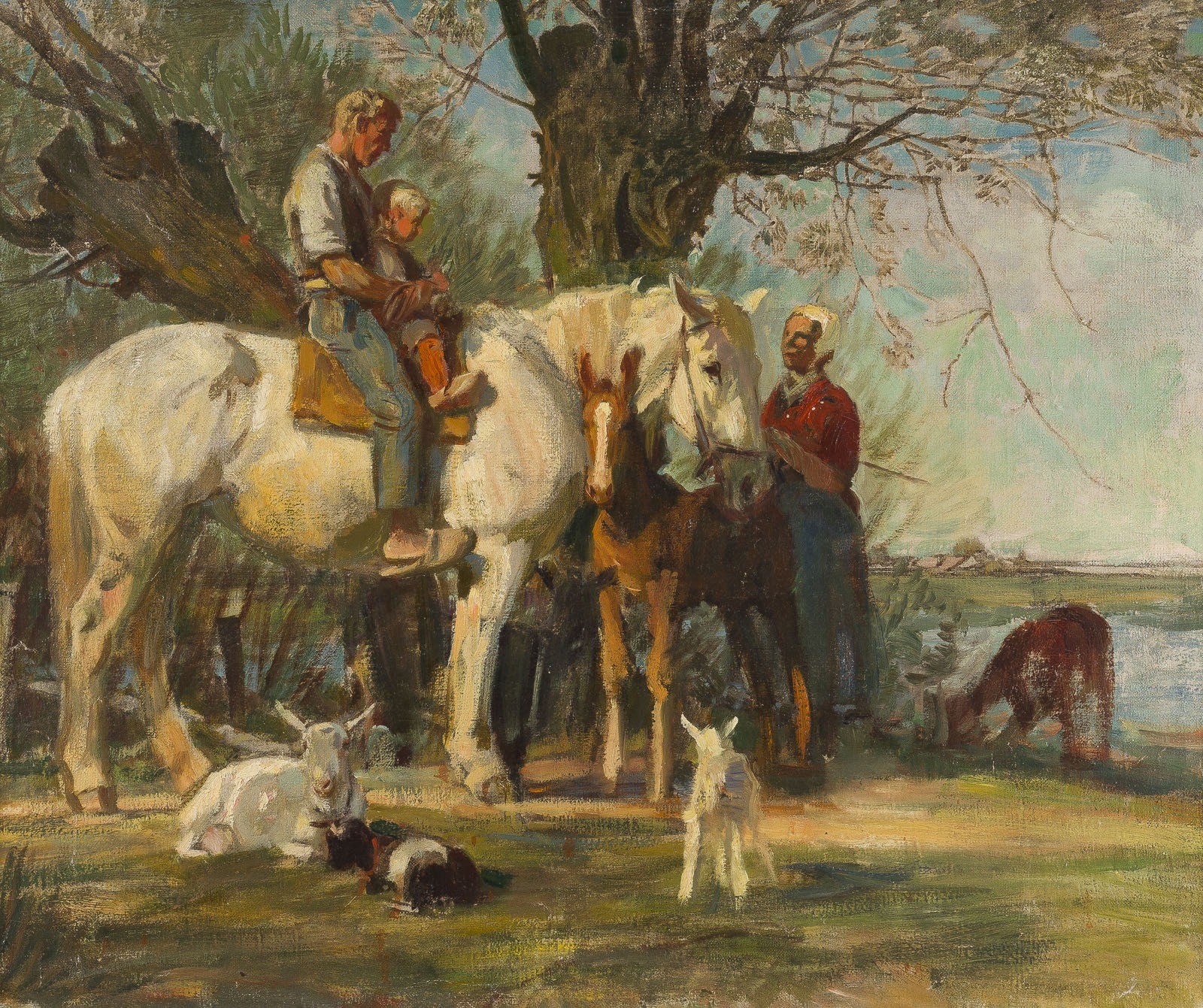LÄNDLICHE IDYLLE. BAUERNFAMILIE AUF DEM HOF