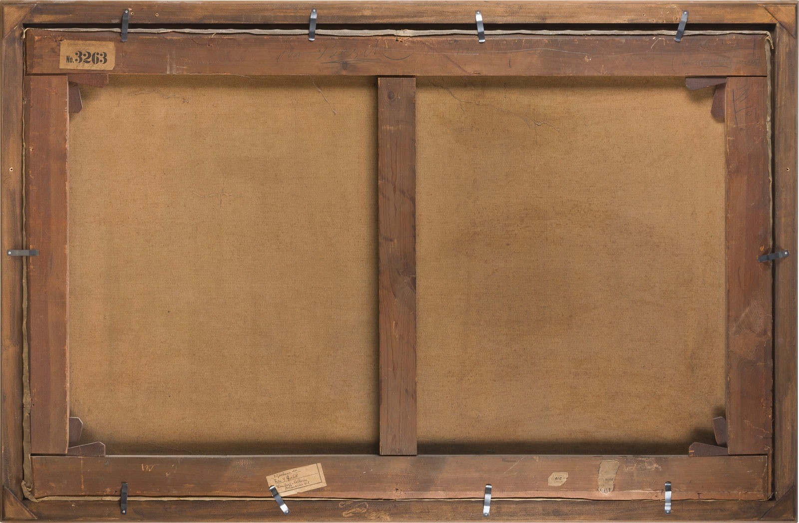 Richter Dresden mit der Nummer 3263; E. mit handschriftlichem Vermerk: Eigentum der Frau J. Gurlitt, Hamburg-Altona, Palmaille 61; E. von Hermes Frankfurt am Main; sowie Reste eines Etiketts mit unleserlichen Beschriftungen. Teilweise Retuschen. Rahmen.