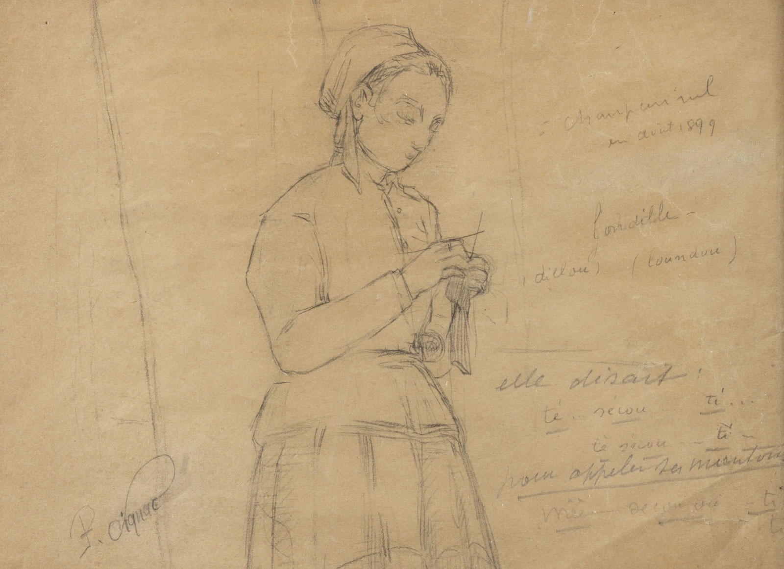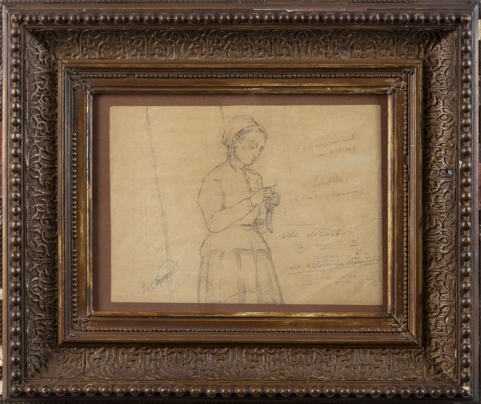 Bleistiftskizze auf Papier. SM 16 x 21 cm (R. 32 x 38 cm). Unten links wohl 'Signac' bezeichnet. Verso: teilweise lesbare französische Beschriftungen. Hinter Glas gerahmt.