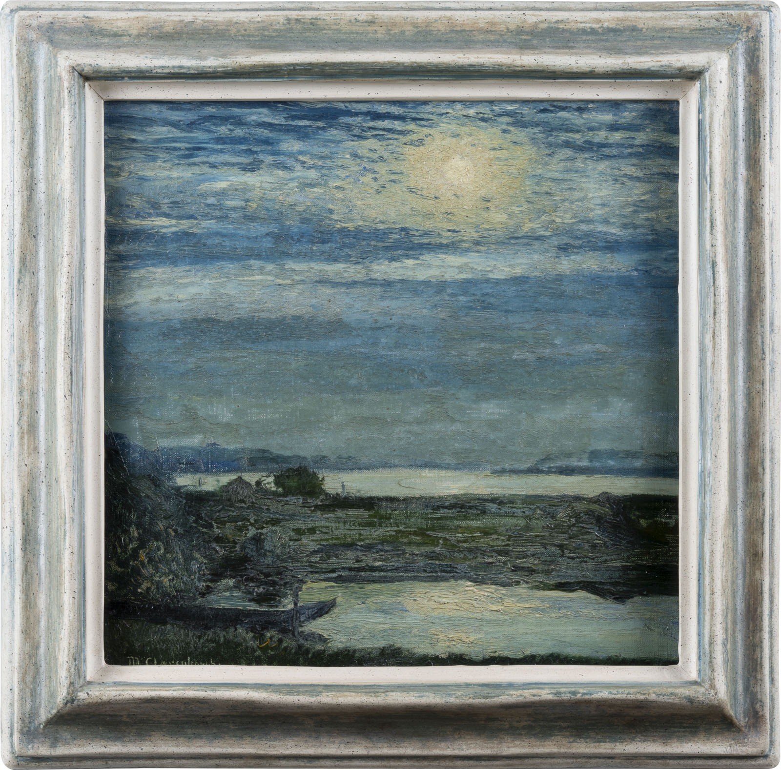 Öl auf Leinwand, auf Holz aufgezogen. 29 x 29 cm (R. 39 x 39 cm). Unten links signiert. Rahmen.