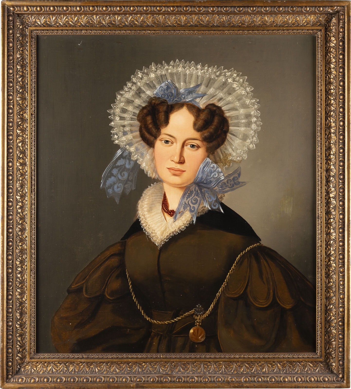 Öl auf Leinwand, doubliert. 64 x 57 cm (R. 75 x 67 cm). Damenportrait schwerleserlich signiert und datiert. Rest. Rahmen.