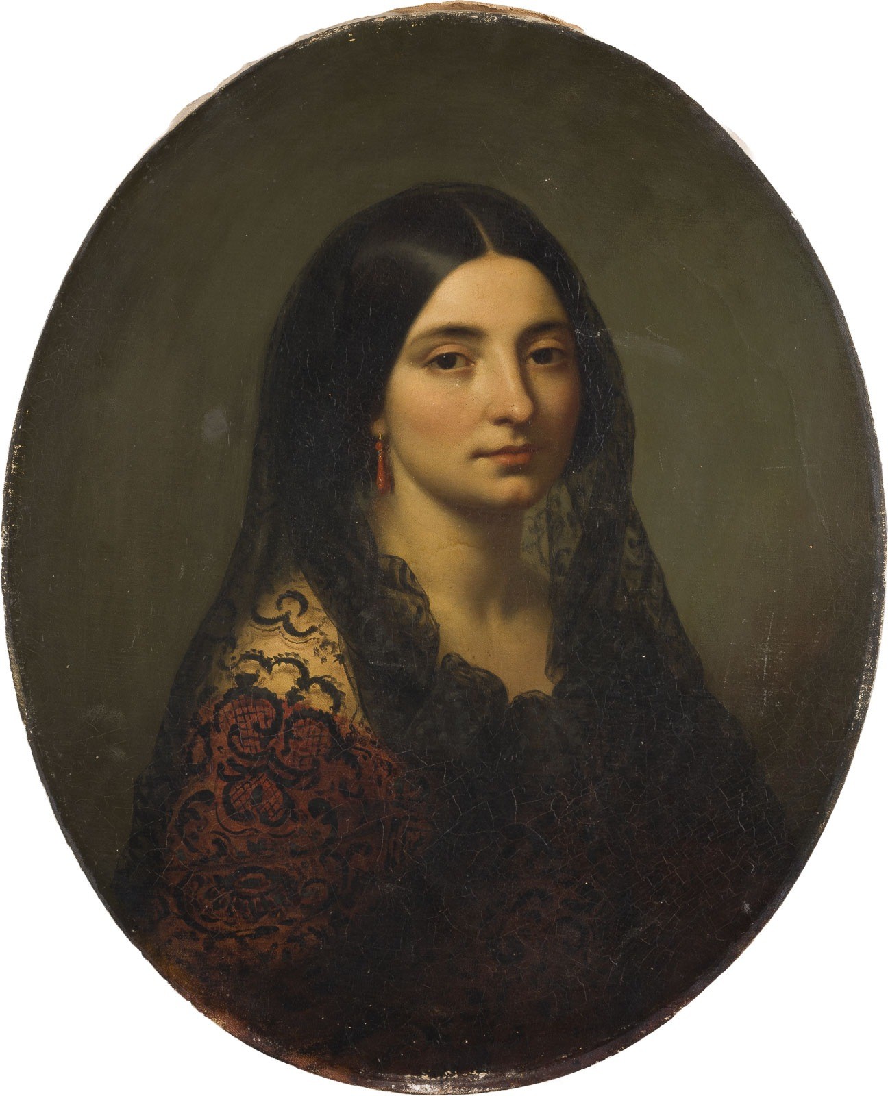 Öl auf Leinwand. 68 x 56 cm. Verso: Leinwand mit englischem Stempel. Teilweise Kratz- und Bereibungsspuren, Krakelee.