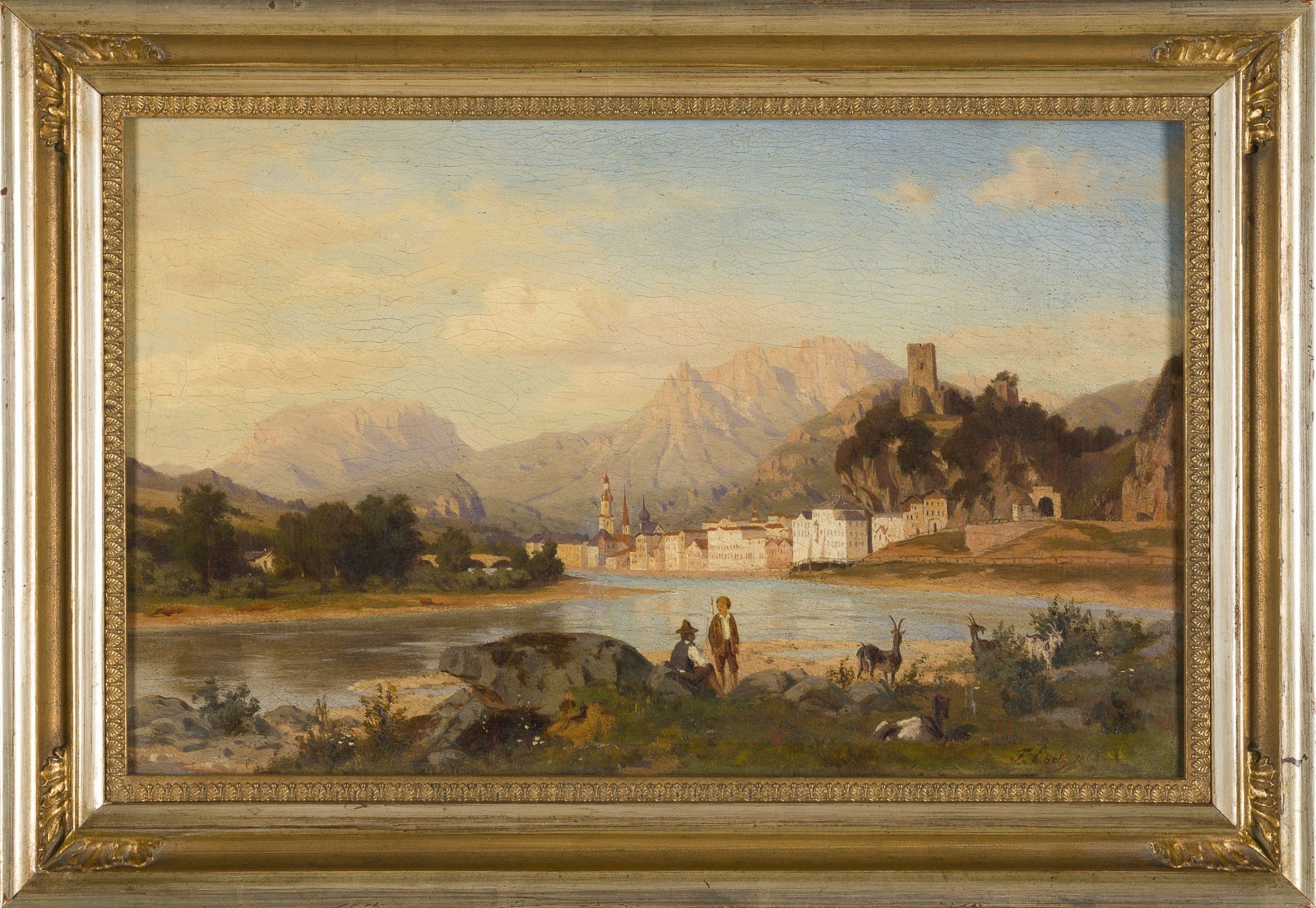 Öl auf Leinwand. 25 x 39 cm (R. 32 x 46,5 cm). Unten rechts signiert und datiert. Part. Krakelee, Retusche. Rahmen.
