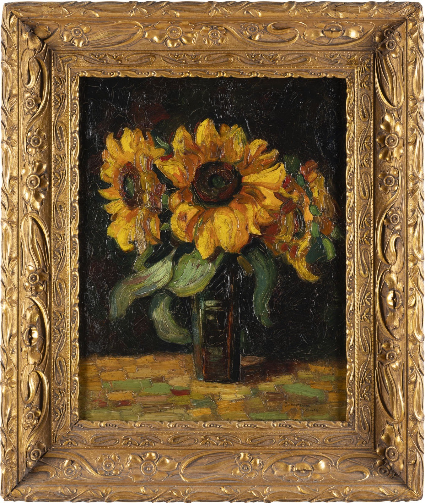 Öl auf Holz. 51 x 40 cm (R. 67 x 57 cm). Signiert unten rechts 'Jan Poortenaar' sowie bez. 'Schets' (?). Verso: unleserl. bez. Rahmen.