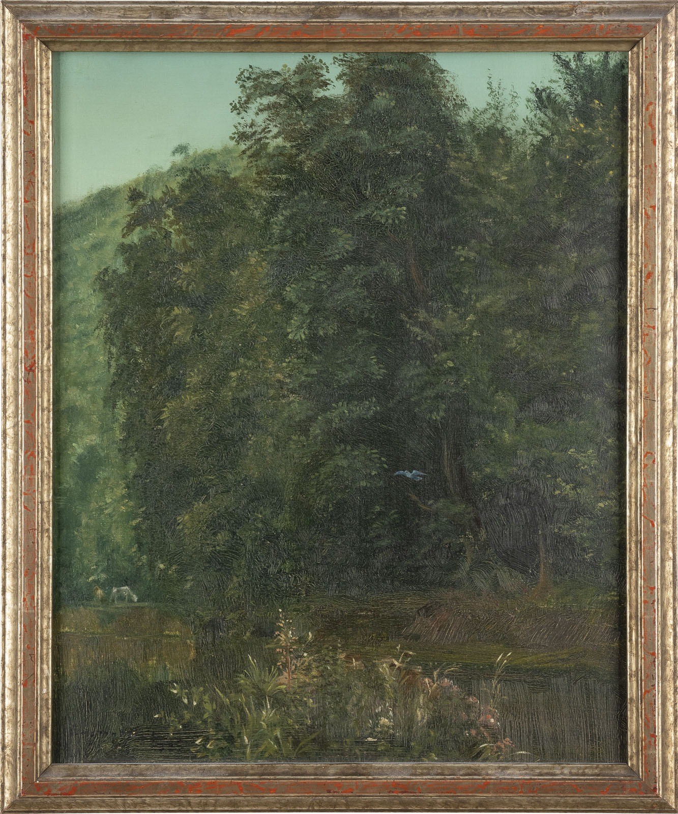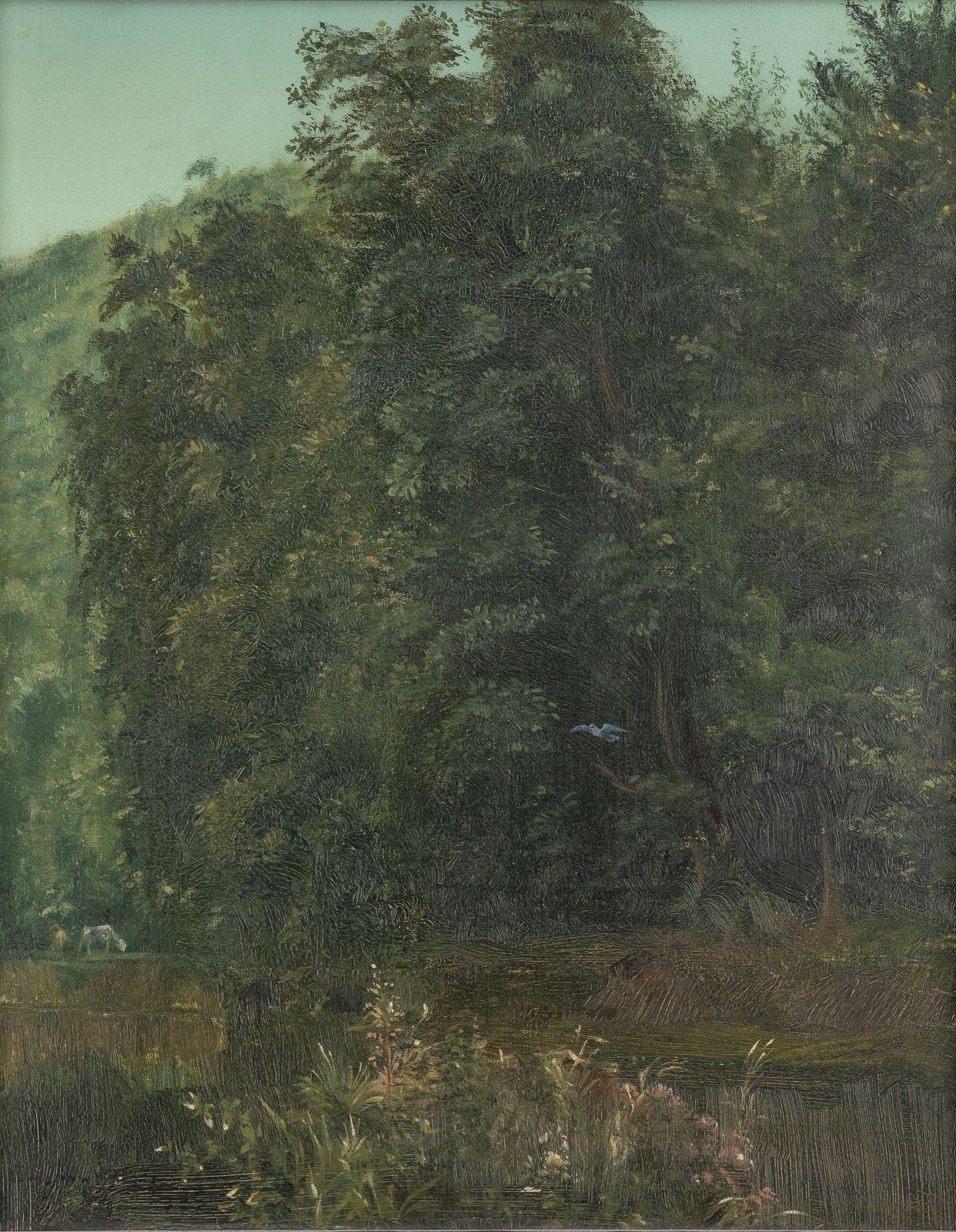 Öl auf Leinwand, Holz. 50 x 40,5 cm (R. 57 x 47 cm). Signiert und datiert unten links. Verso: betitelt. Krakelee. Rahmen.