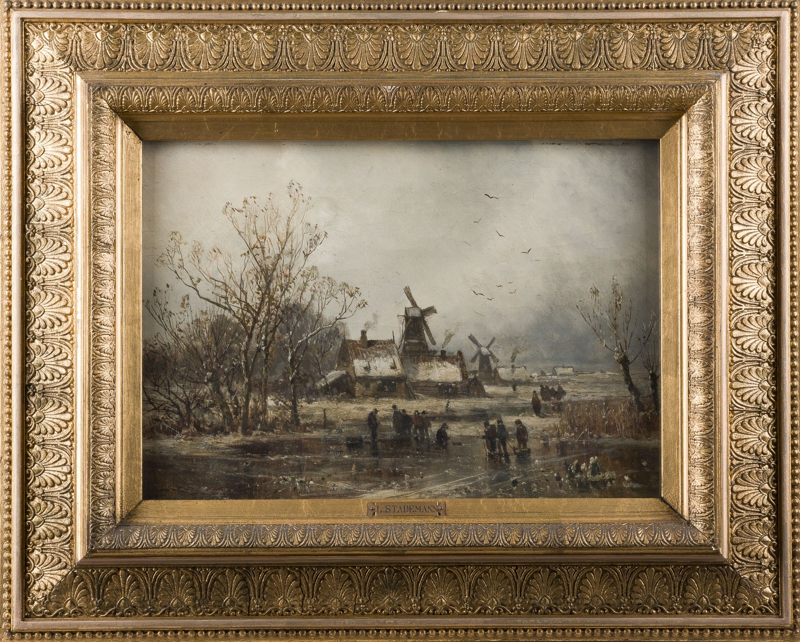Öl auf Leinwand. 30 x 41 cm (R. 49 x 60 cm). Verso: Leinwand mit Stempel. Hinter Glas gerahmt.