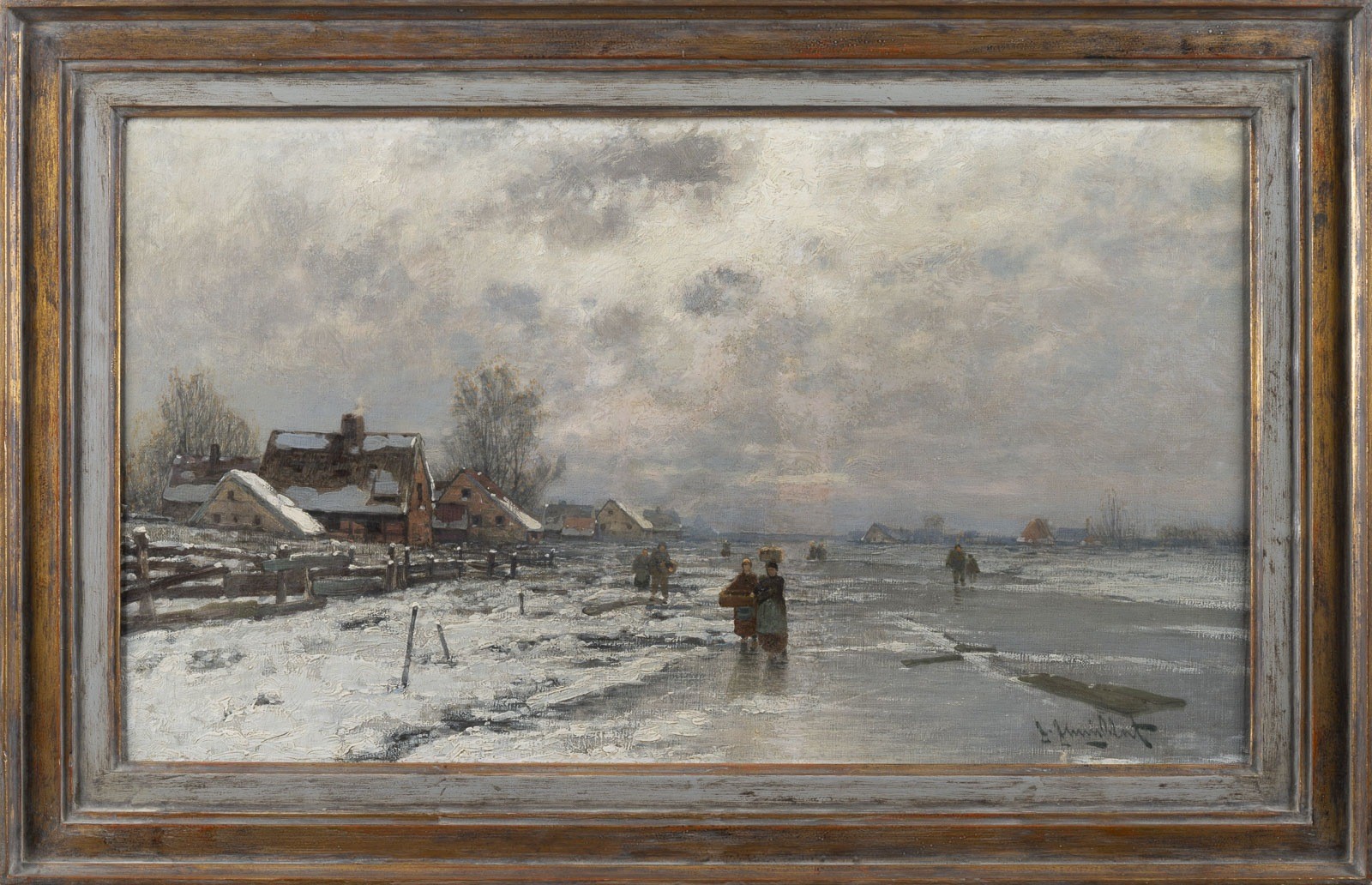 Öl auf Leinwand, doubliert. 33 x 56 cm (R. 43 x 66 cm). Unten rechts signiert. Rahmen.