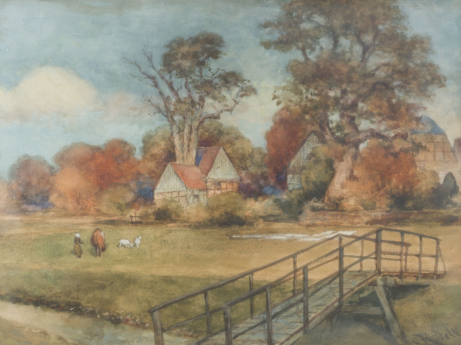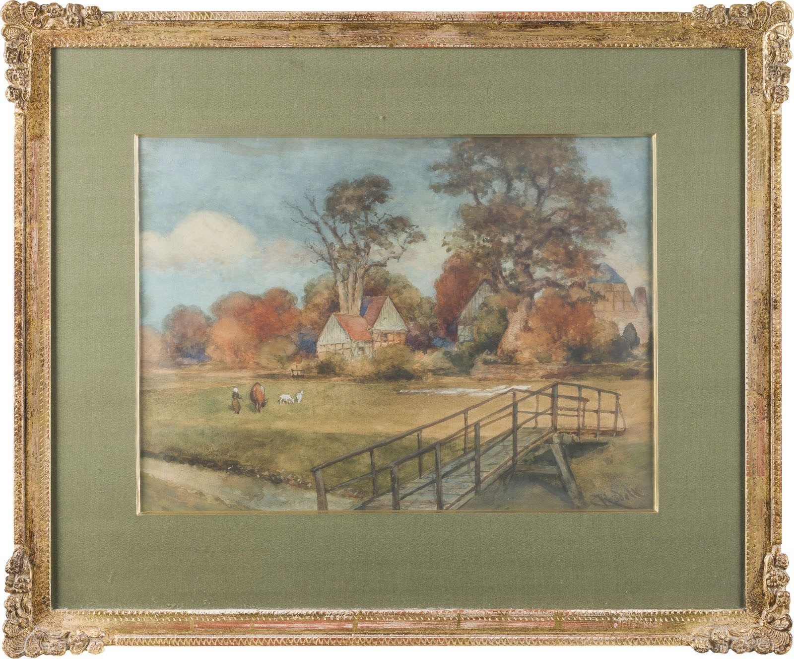 Jew. Aquarell auf Papier. SM 22 x 36,5 cm (R. 44,5 x 57 cm) 28 x 38,5 cm (R.. Jew. signiert. Jew. leciht gebräunt. Jew. hinter Glas und im Passeaperout gerahmt (ungeöffnet).