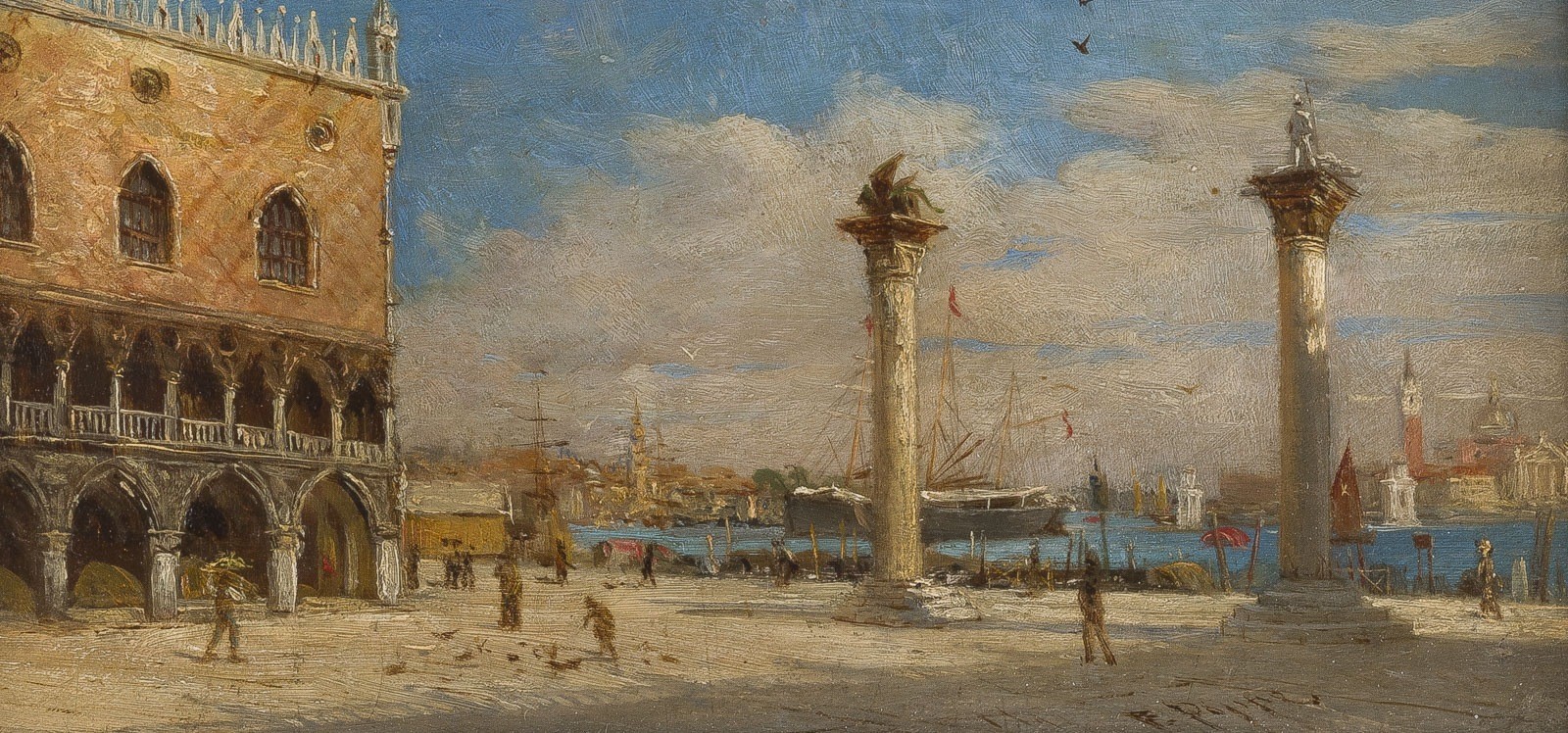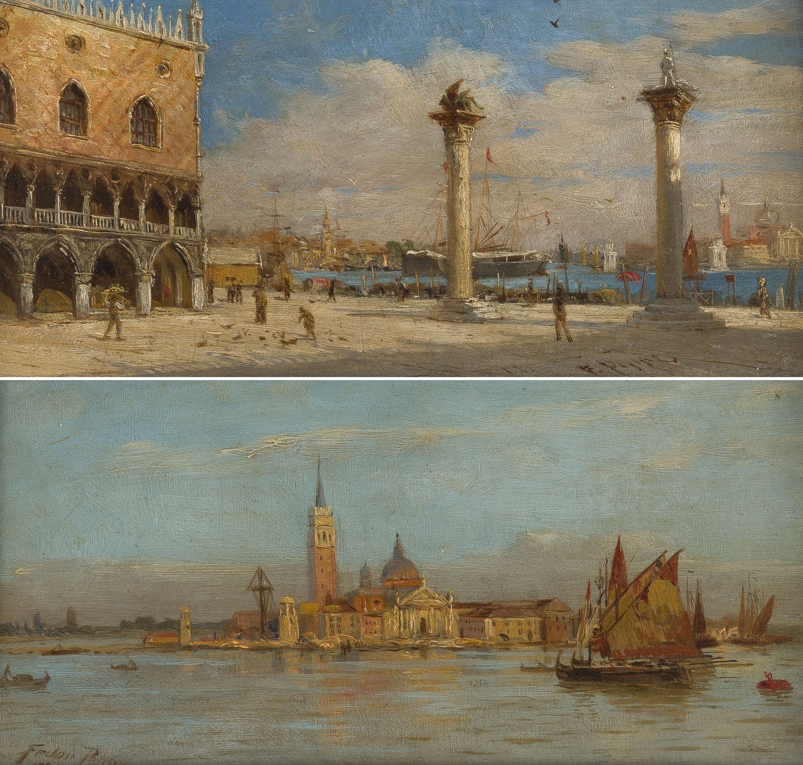 ZWEI VENEZIANISCHE ANSICHTEN: BLICK AUF DEN DOGENPALAST UND MARKUSSÄULEN. BLICK AUF SAN GIORGIO MAGGIORE, 1892