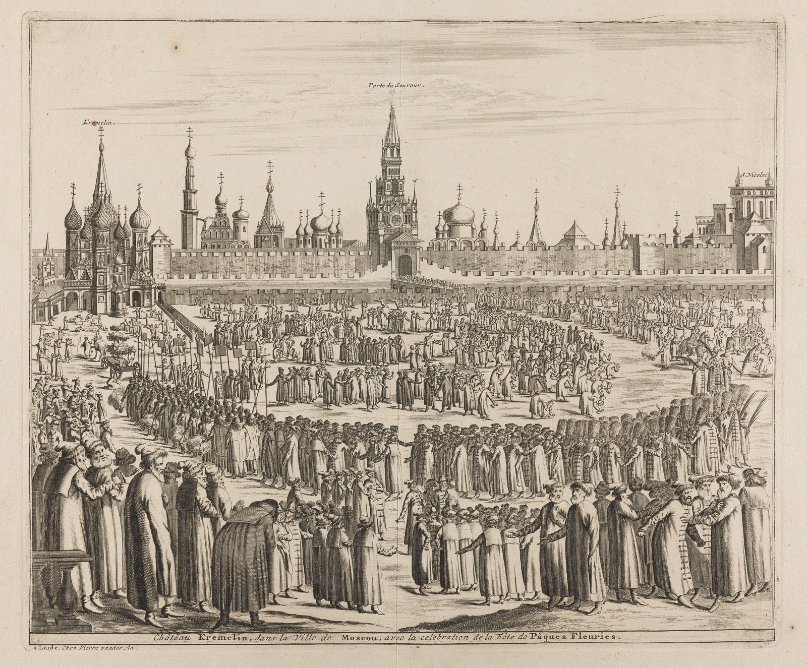 ANSICHT DES MOSKAUER KREMLS - 'CHATEAU KREMELIN, DANS LA VILLE DE MOSCOU, AVEC LA CELEBRATION DE LA FETE DE PAQUES FLEURIES'