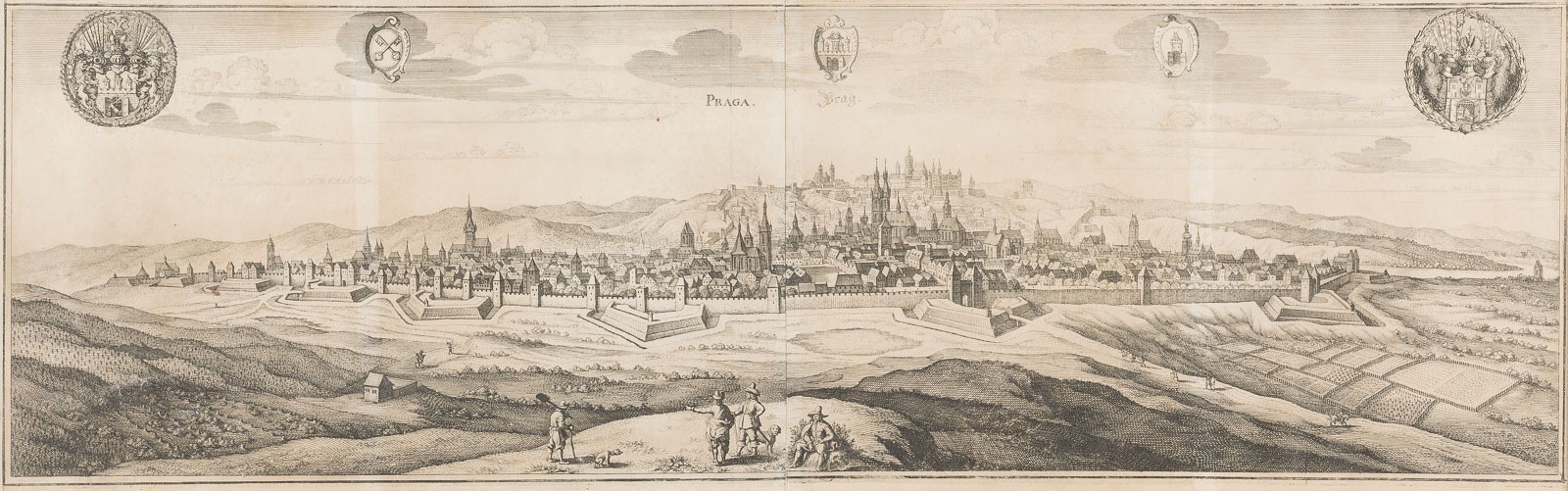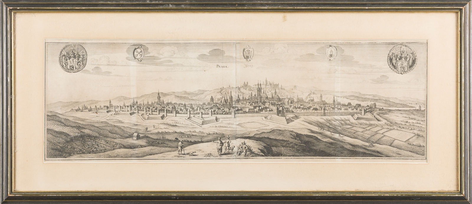 Kupferstich auf Papier, mit Mittelfalz. SM 20,5 x 65 cm (R. 35 x 80 x 1,5 cm). Gebräunt, fleckig, leicht besch. In einem Passepartout und hinter Glas gerahmt (ungeöffnet).