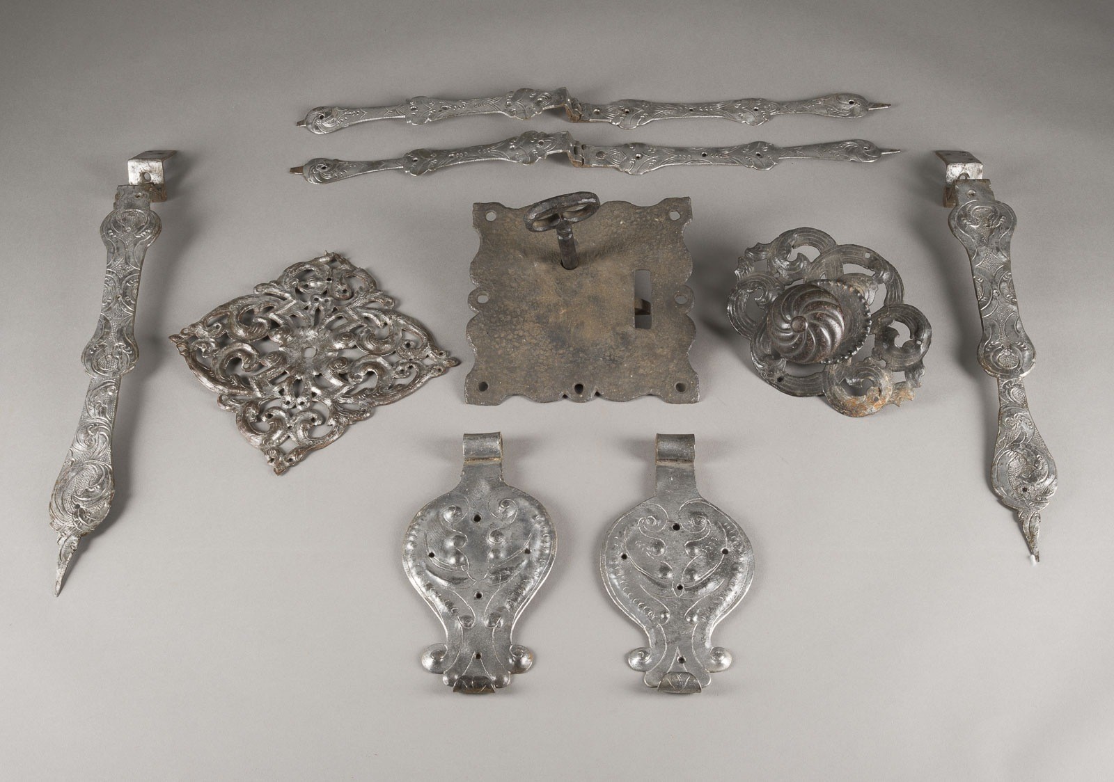 Eisen, geschmiedet und teils verzinnt. Max. L. 62 cm. 9-teilig. Gebrauchs- und Altersspuren.