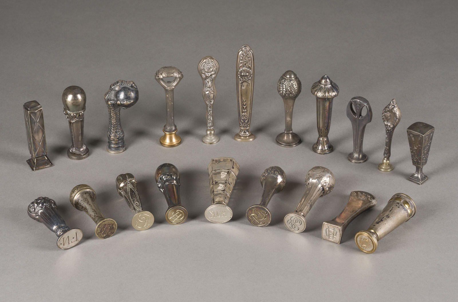 Verschiedene Metalle, Silber und versilbert. Max. L. 11,5 cm, min. L. 6,5 cm. Verschiedene Ausführungen und Monogramme. Part. besch.