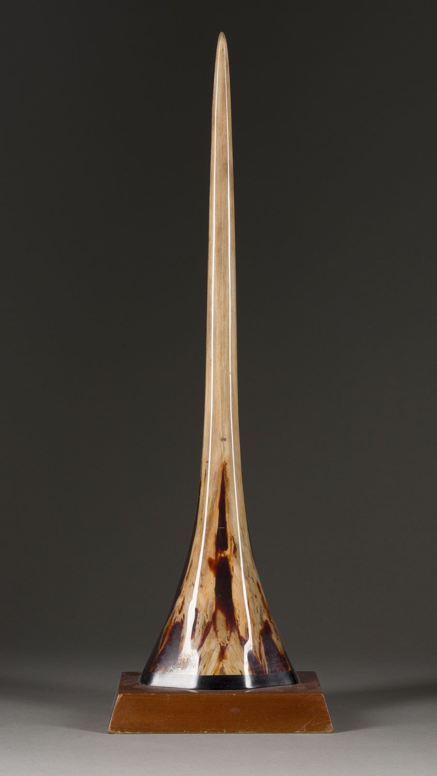 Rostrum, poliert, mit dunkel-braunem Kunststoff gesichert, Holzsockel. Ges.-H. 69 cm, Sockel 22 x 15 x 4 cm. Part. ber. und min. best.