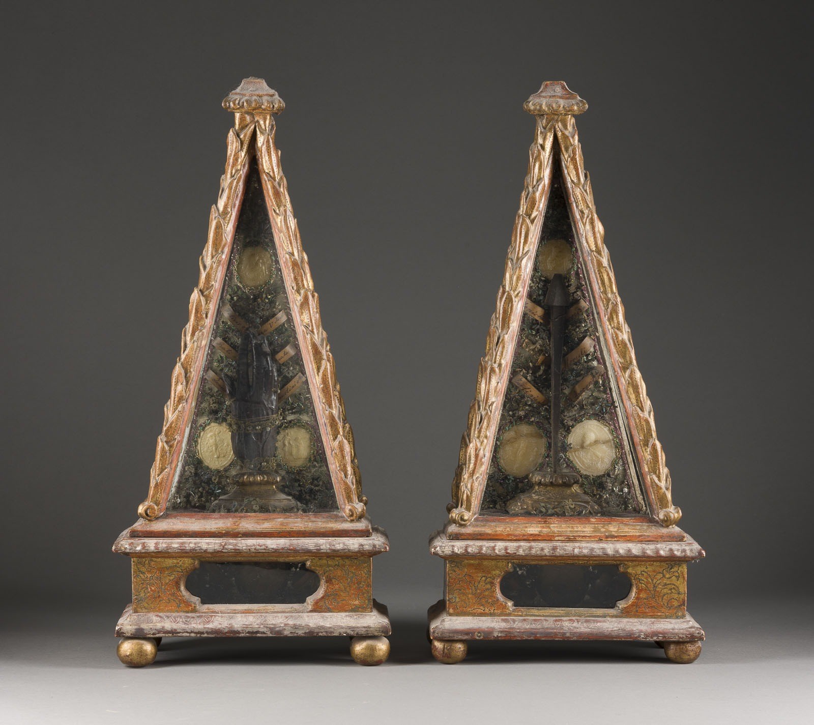 ZWEI GROSSE KLOSTERARBEITEN MIT ANNAHAND UND KREUZESNAGEL