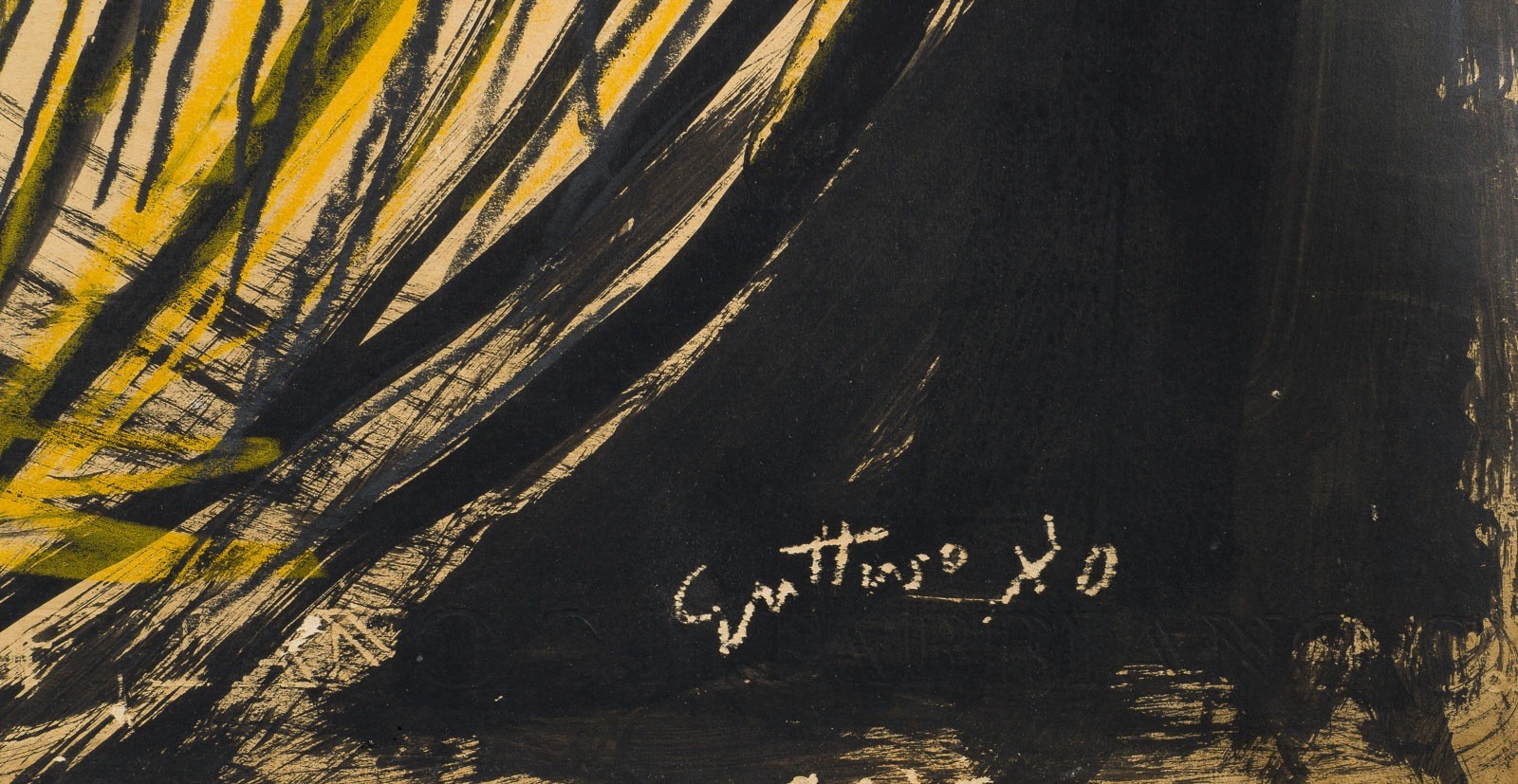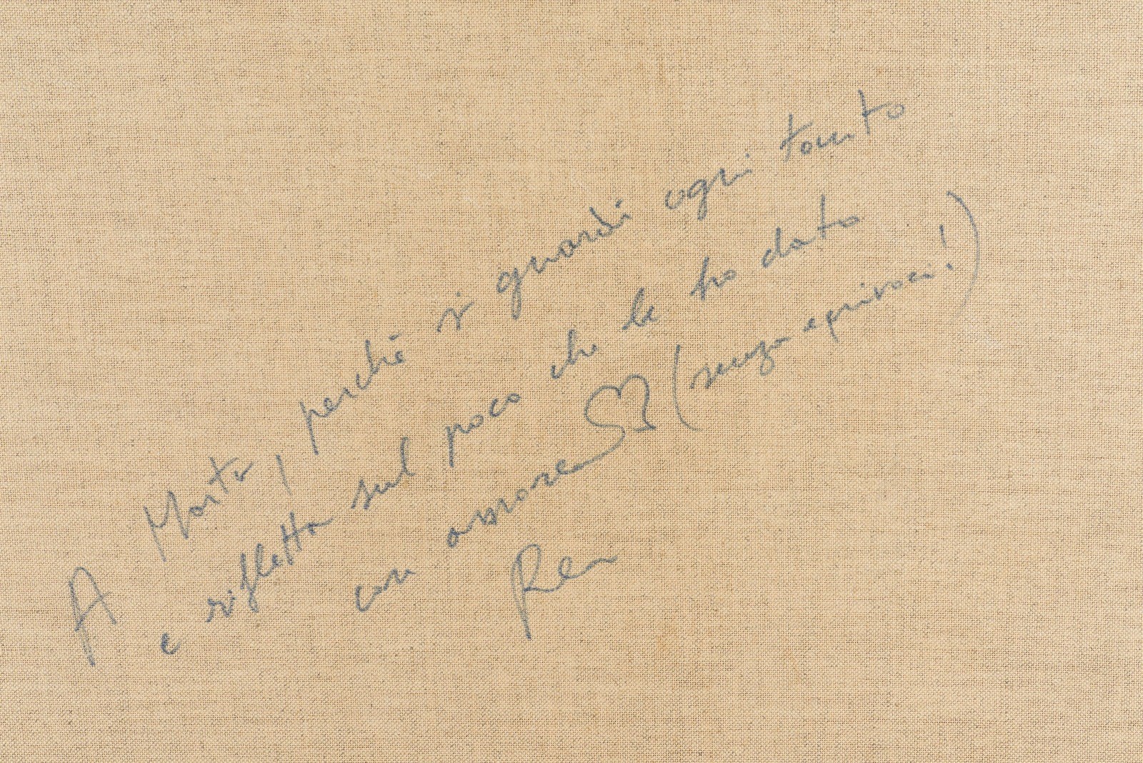 Mischtechnik auf Papier, auf Leinwand. R 102 x 89,5 cm, Lwd. 75 x 71,5 cm. Unten rechts signiert und datiert. Verso: Rückseitig mit Widmung auf Italienisch von Renato Guttuso an Marta Marzotto. Marta Marzotto (1931-2026) und Renato Guttuso verband eine lange und intensive, aber