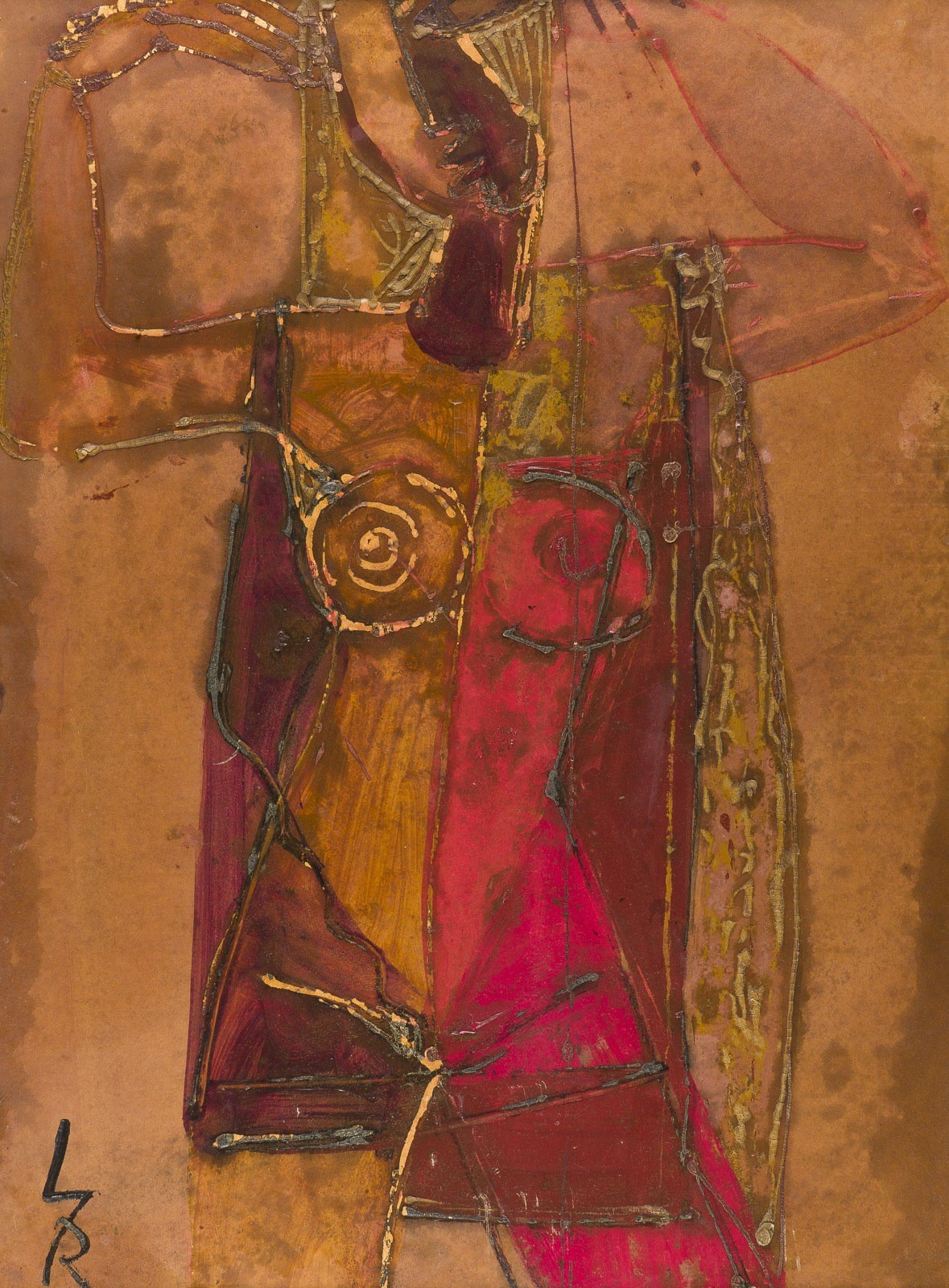 Mischtechnik mit Öl auf Platte. R 71,5 x 54,5 cm. SM 64 x 46,8 cm. Unten links monogram. 'LR'. Part. Farbabplatzungen. Hinter Glas gerahmt (ungeöffnet).
