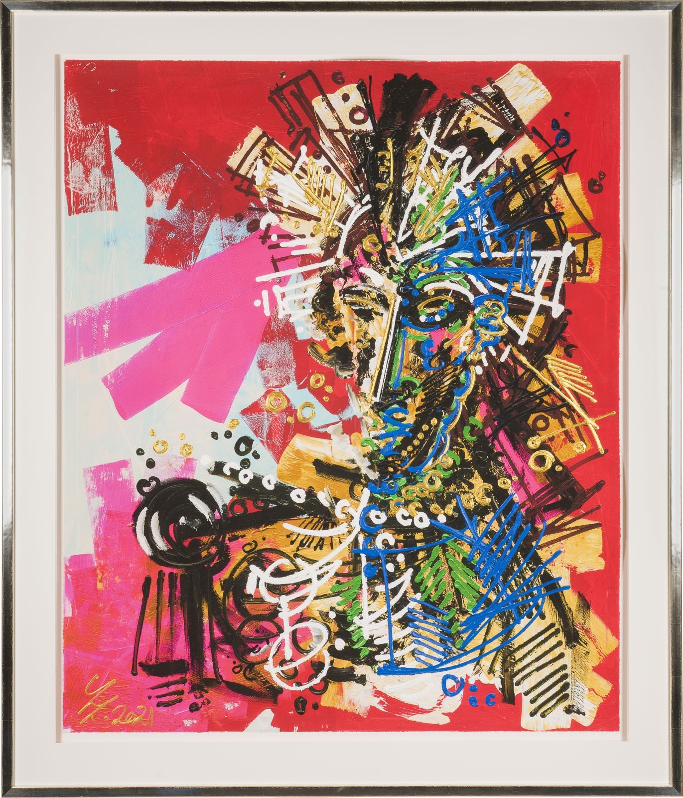 Acryl über Pigmentdruck auf Bütten. R. 140 x 120,5 cm, 120 x 100 cm. Unten links monogram. und datiert, unten rechts bez. 'e.a.'. Sehr guter Zustand, Montierungsbedingt leicht gewellt. Im Passepartout montiert und hinter Glas gerahmt (ungeöffnet).