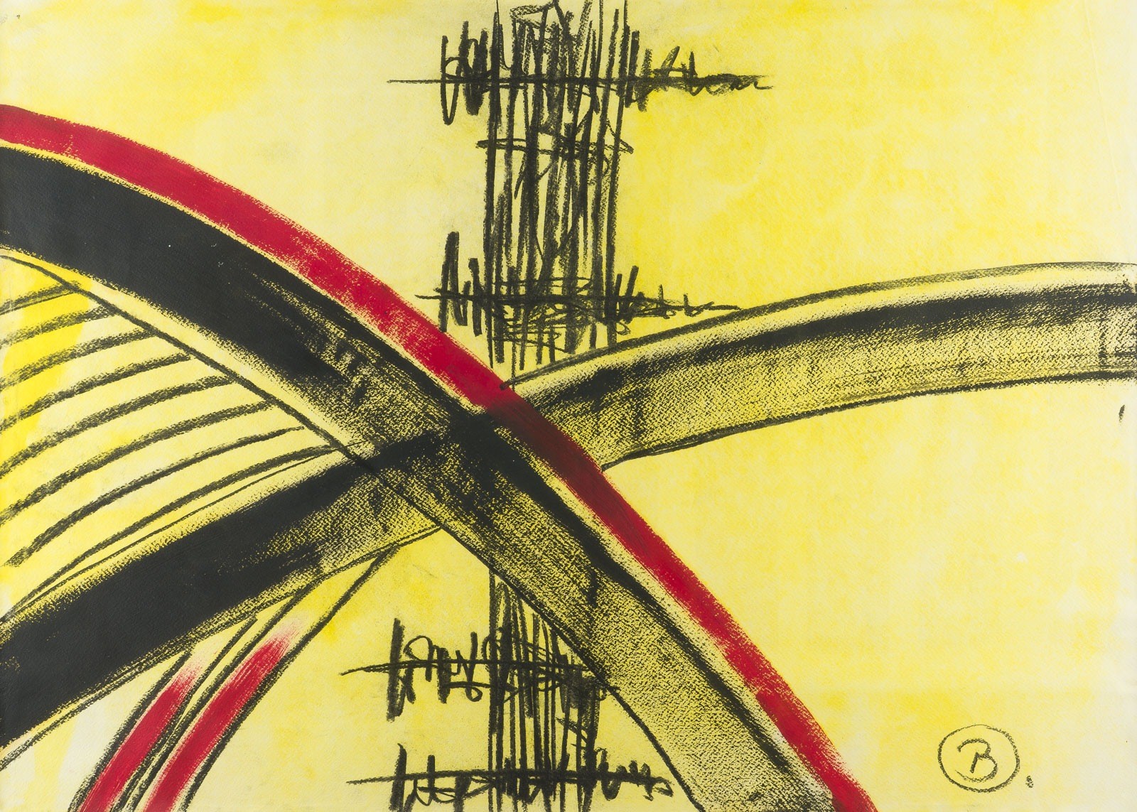 Mischtechnik auf Papier. R 68,5 x 86,5 cm. BM 51,5 x 71 cm. Unten rechts mit Künstlermonogramm. Knickspur an der oberen rechten Ecke. Auf hellem Hintergrund montiert sowie im Passepartout und hinter Glas gerahmt (ungeöffnet).