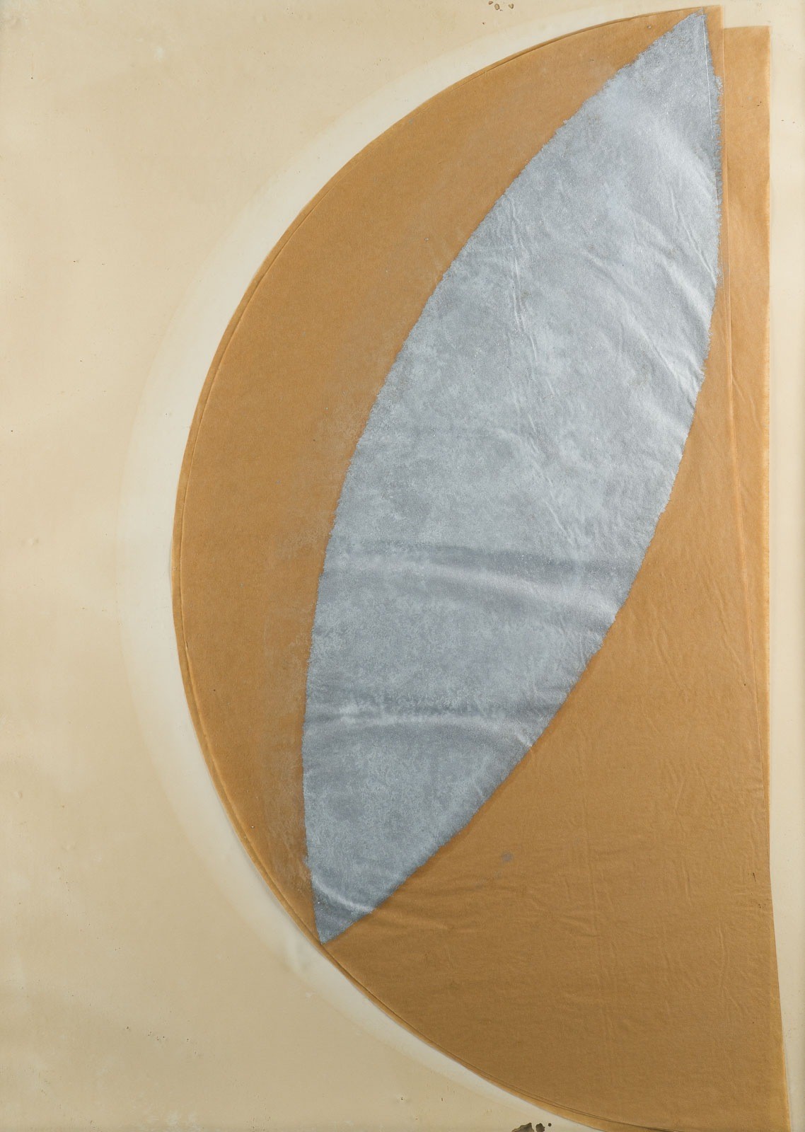 Mischtechnik, Collage, Silberfarbe auf braunem Transparentpapier. R 61 x 81 cm, ca. 41 x 77,5 cm. Wohl unsigniert. Papier am Rand besch., gebräunt, im Rahmen leicht verrutscht. Hinter Glas gerahmt (ungeöffnet).