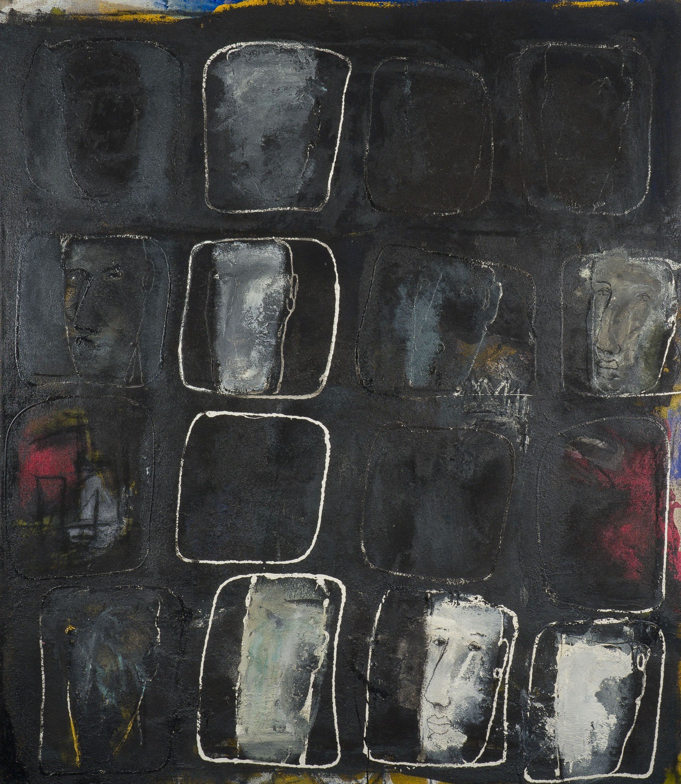 Mischtechnik auf Leinwand. 150 x 130 cm. Verso: Rückseitig monogr., betitelt, dat. u. bez. Bahram Hajou, 1952 im nordsyrischen Deruna geboren, zählt heute zu den bedeutendsten figurativen Malern der Gegenwart. Der Künstler kurdischer Abstammung lebt seit vielen Jahren in Münster und verbindet in seinem Werk emotionale Intensität mit formaler Klarheit. Seine dem Neoexpressionismus zuzurechnende Malerei entfaltet eine eindringliche, zugleich universale Bildsprache, die sich mit den großen Themen menschlicher Existenz auseinandersetzt: Nähe und Distanz, Liebe und Macht, Einsamkeit und Begehren.